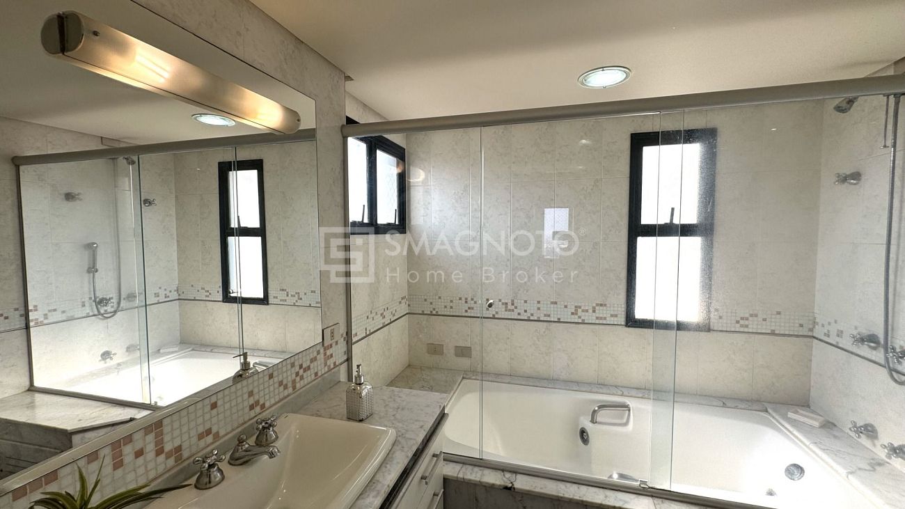 Ao adentrar, você será recebido por três espaçosos dormitórios, todos cuidadosamente equipados com armários embutidos e ar-condicionado para o máximo conforto. A suíte principal é um verdadeiro refúgio, com um elegante closet e uma relaxante banheira de hidromassagem.