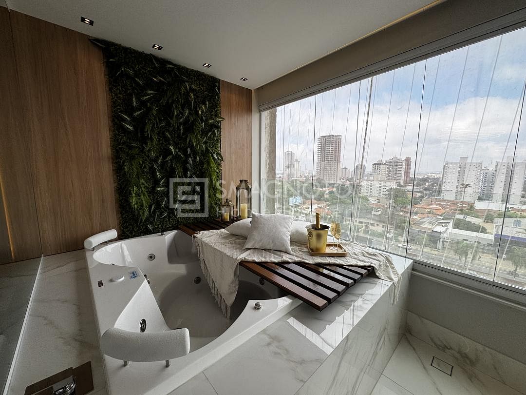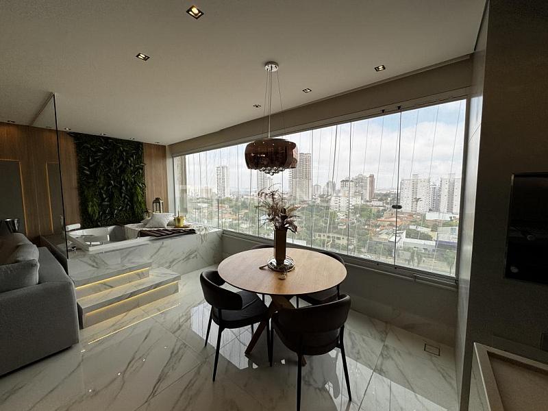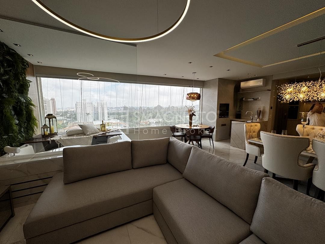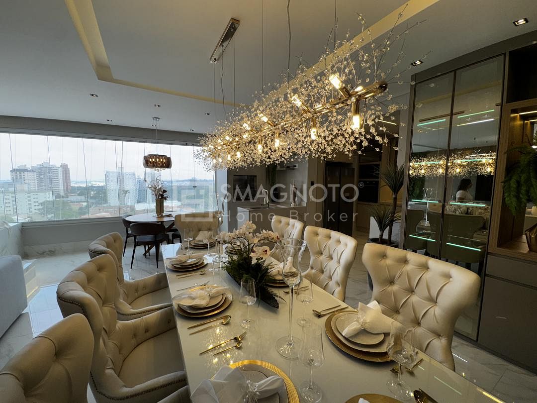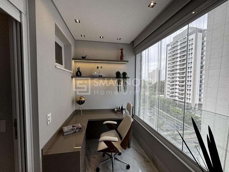 Apartamento com 3 suítes, todas com ar condicionado e armários planejados, Home Office, sal de jantar e estar integrada a varanda gourmet com banheira de hidromassagem.