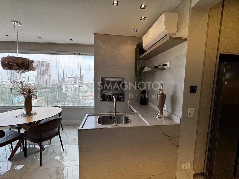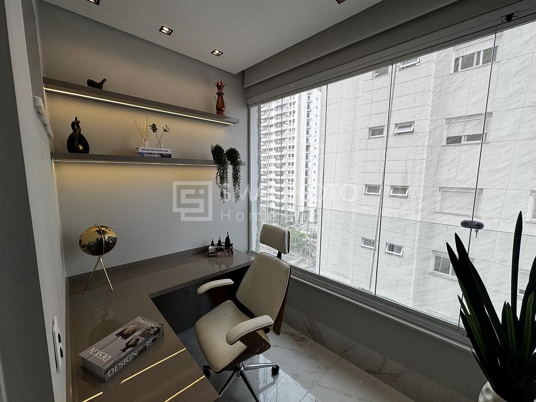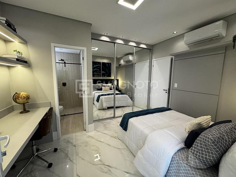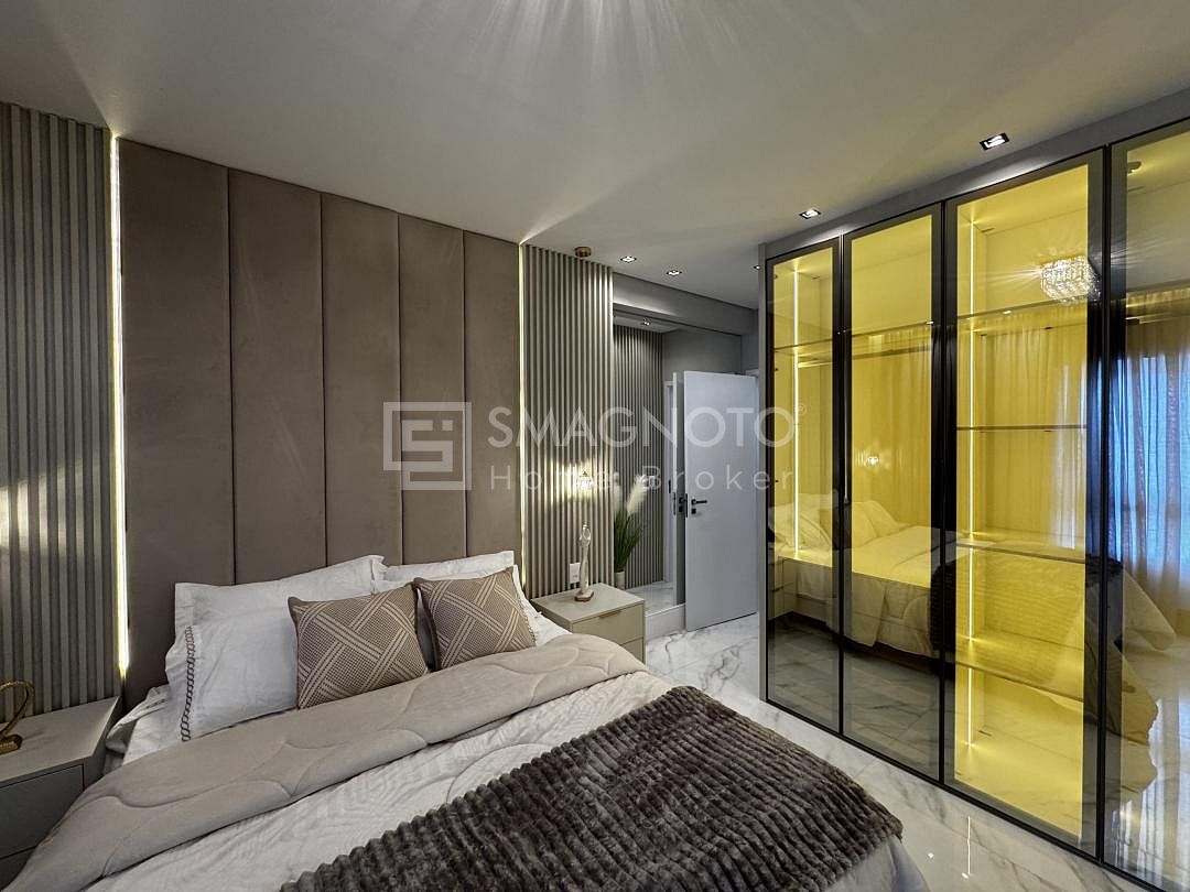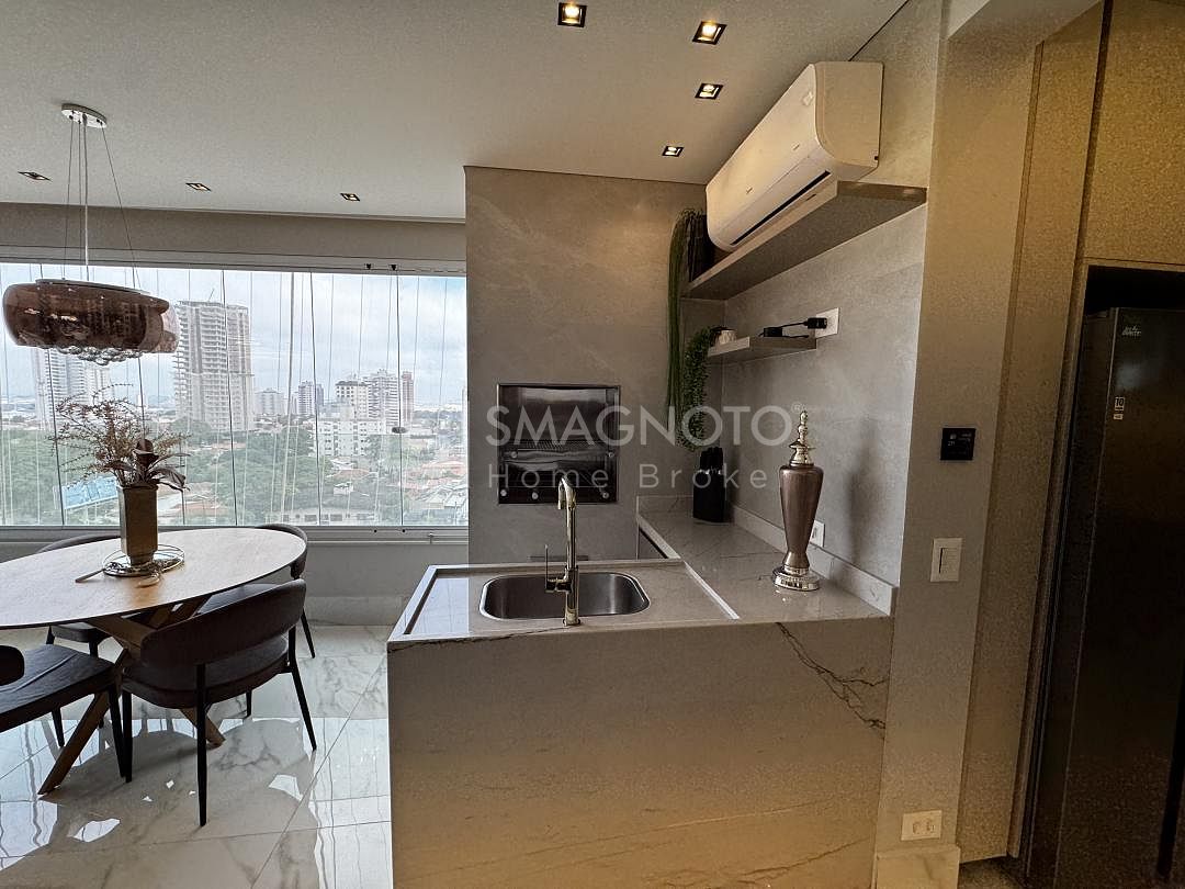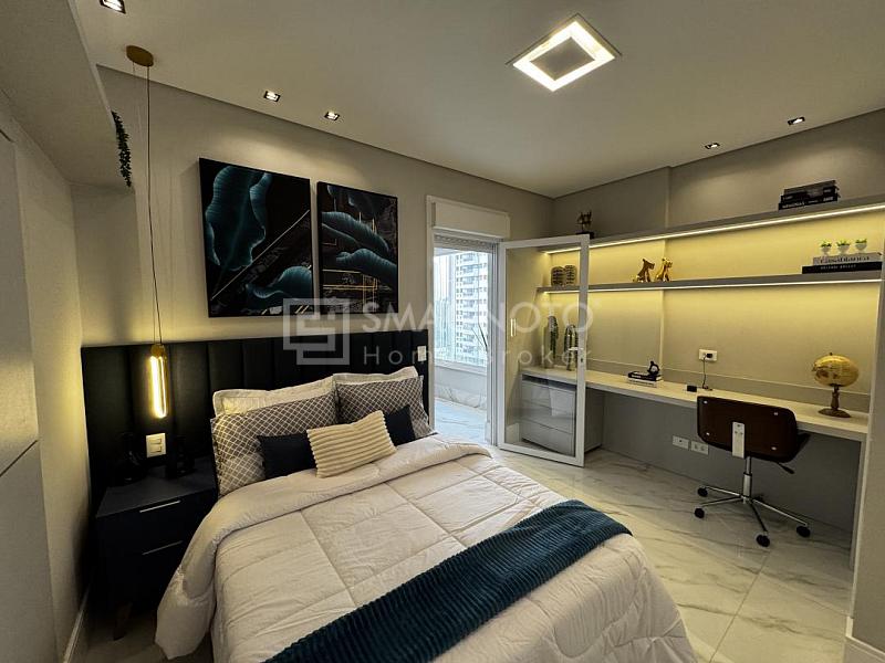 Apartamento com 3 suítes, todas com ar condicionado e armários planejados, Home Office, sal de jantar e estar integrada a varanda gourmet com banheira de hidromassagem.
