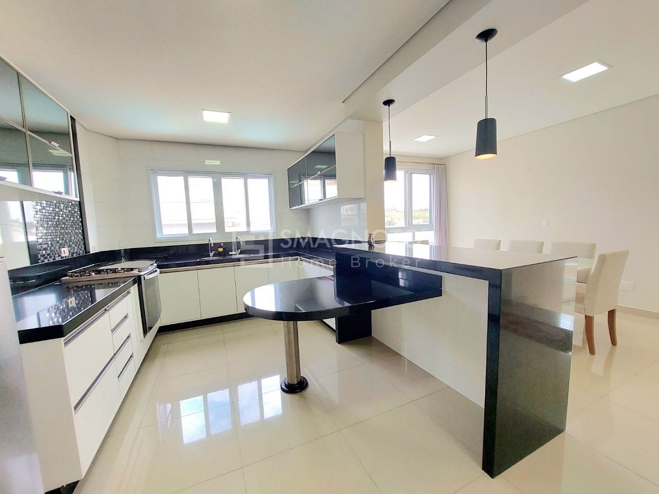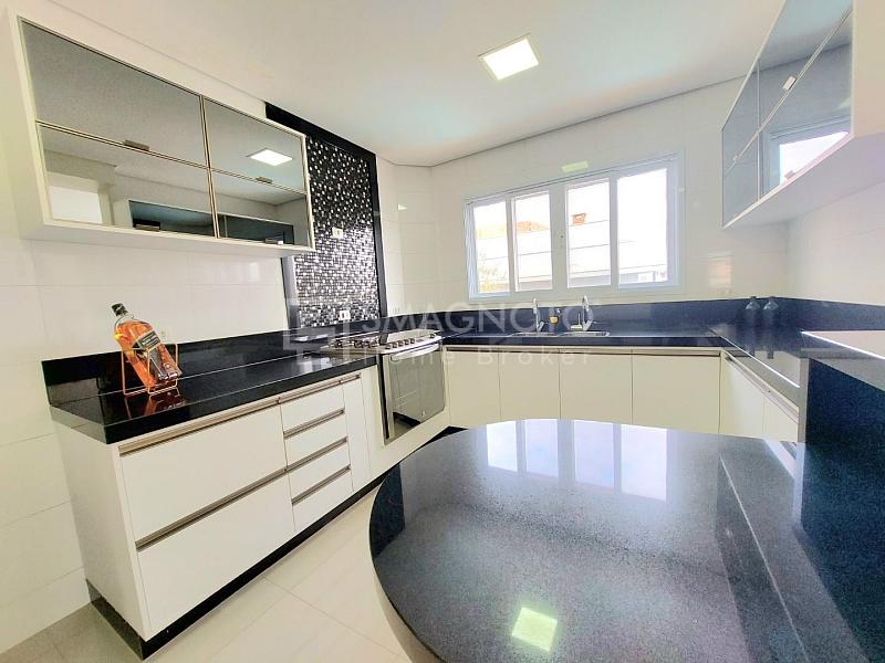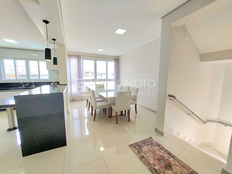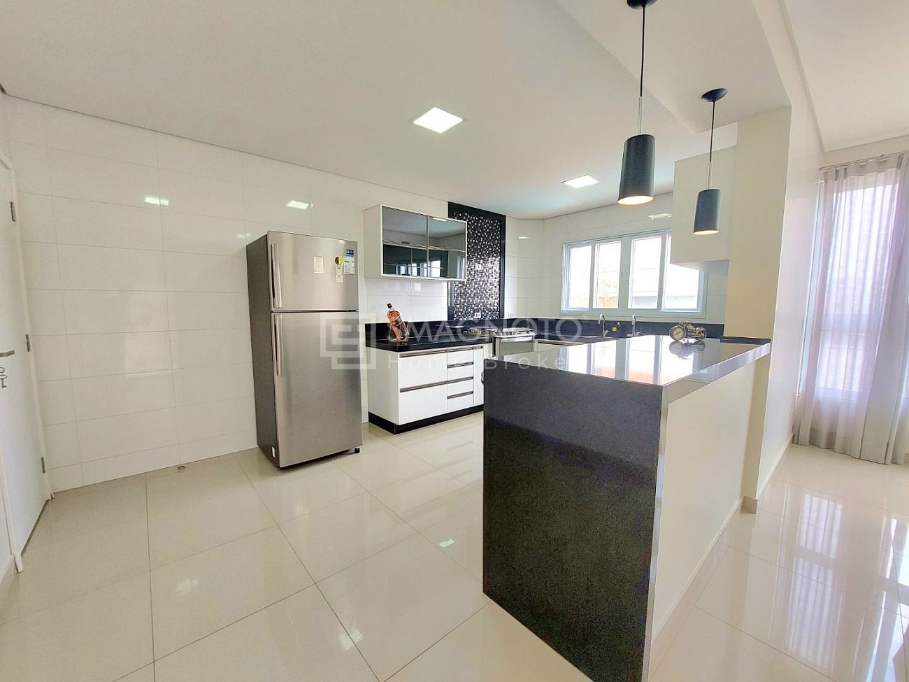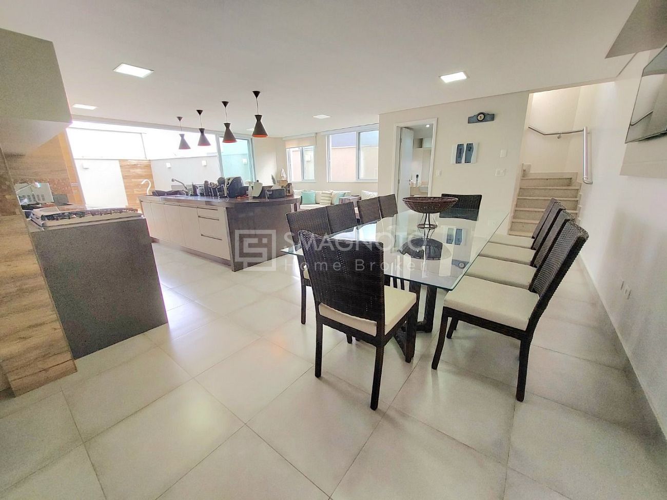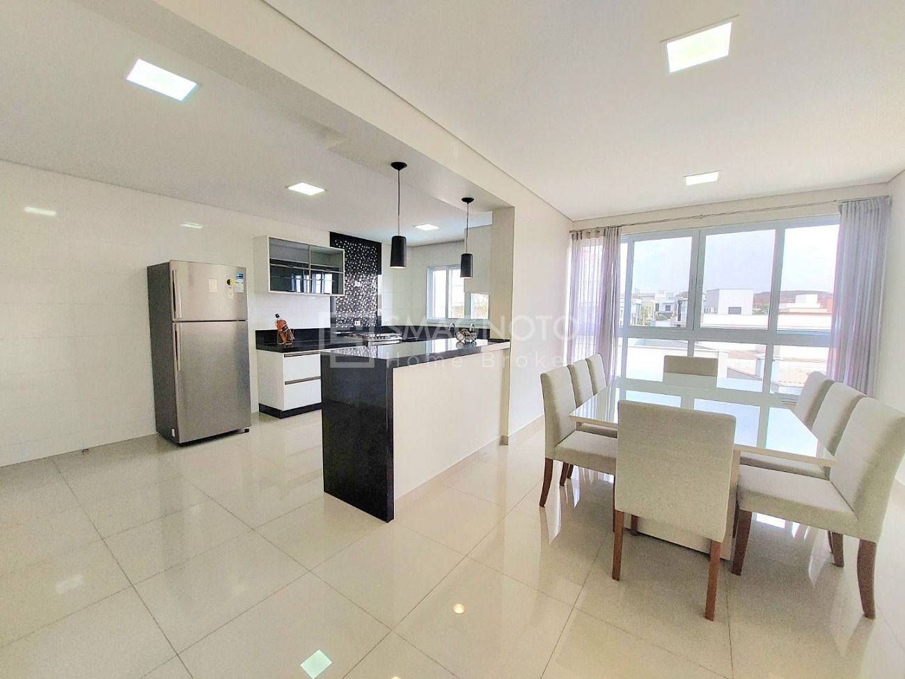 A sala de jantar, integrada à cozinha americana com planejados, proporciona um ambiente harmonioso e funcional para suas refeições diárias.