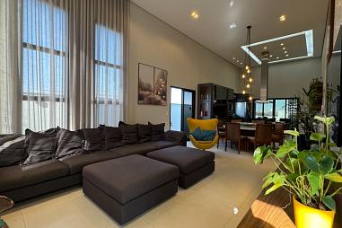 Em uma rua tranquila e sem saída no alto do Condomínio Villa D'Aquila , encontra-se esta magnífica casa térrea de alto padrão, com uma arquitetura contemporânea que impressiona pela elegância e funcionalidade.