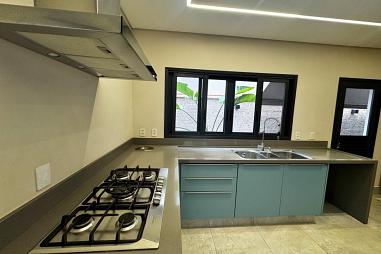 A cozinha moderna, equipada com uma ilha central, conecta-se de forma harmônica à área gourmet, ideal para receber amigos e familiares.