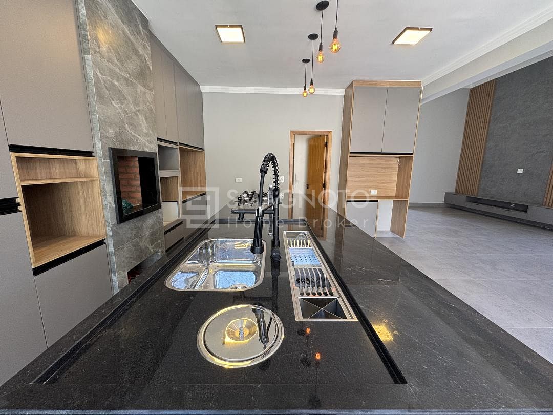 O imóvel também conta com um escritório, lavabo, área de serviço e quatro vagas de garagem, sendo duas cobertas e duas descobertas.
