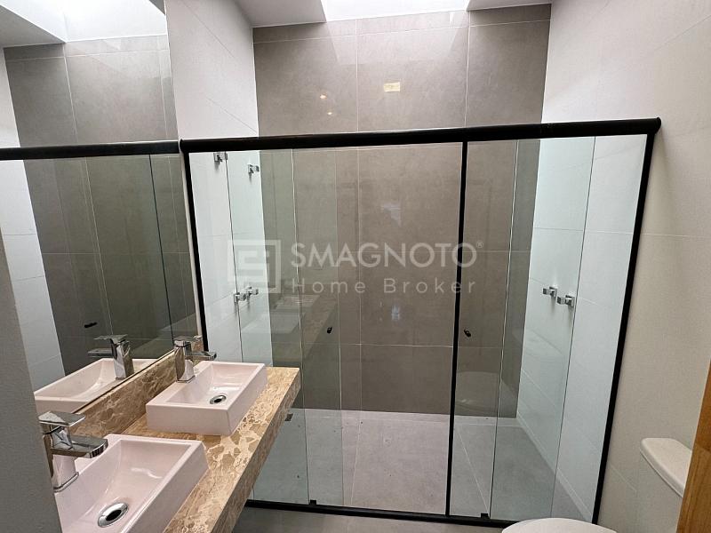 Imóvel conta com garagem para 2 veículos. Banheiro social com acabamento impecável, destaques construtivos como torneiras monocomando na cozinha e banheiros, aquecimento solar com boiler de 400 litros e 3 placas instaladas, ponto de espera para ar-condicionado na sala e quartos.