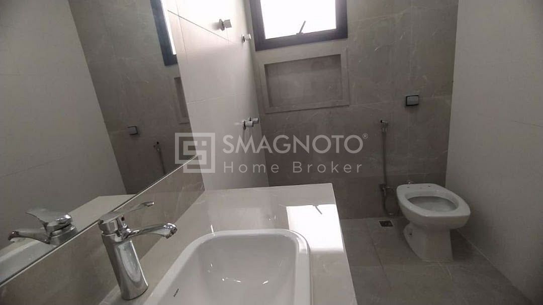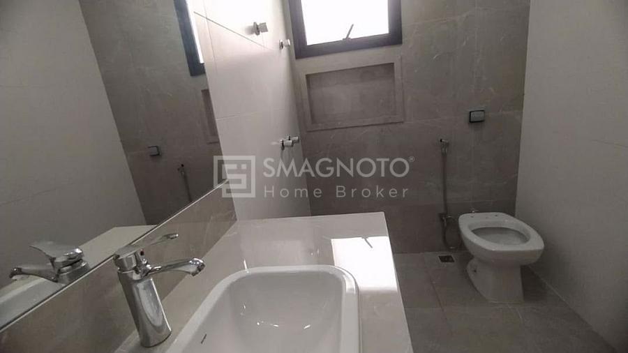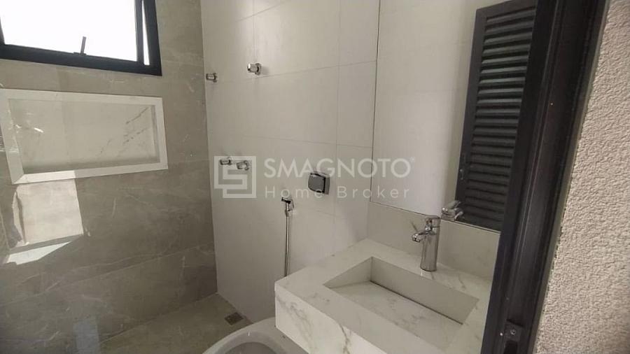 Imóvel contem janelas venezianas com cortinas persianas, piso porcelanato polido, pias de mármore esculpidas, e demais materiais de primeira linha para acabamento