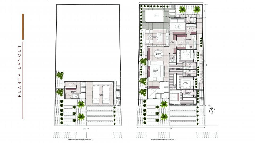 Com 479,68m² de área total e 302,11m² de área útil, esta residência grandiosa oferece um estilo de vida sem igual. No térreo, um imponente hall de entrada dá as boas-vindas, acompanhado de um prático depósito e 4 vagas de garagem, sendo duas cobertas, garantindo comodidade desde o primeiro instante.