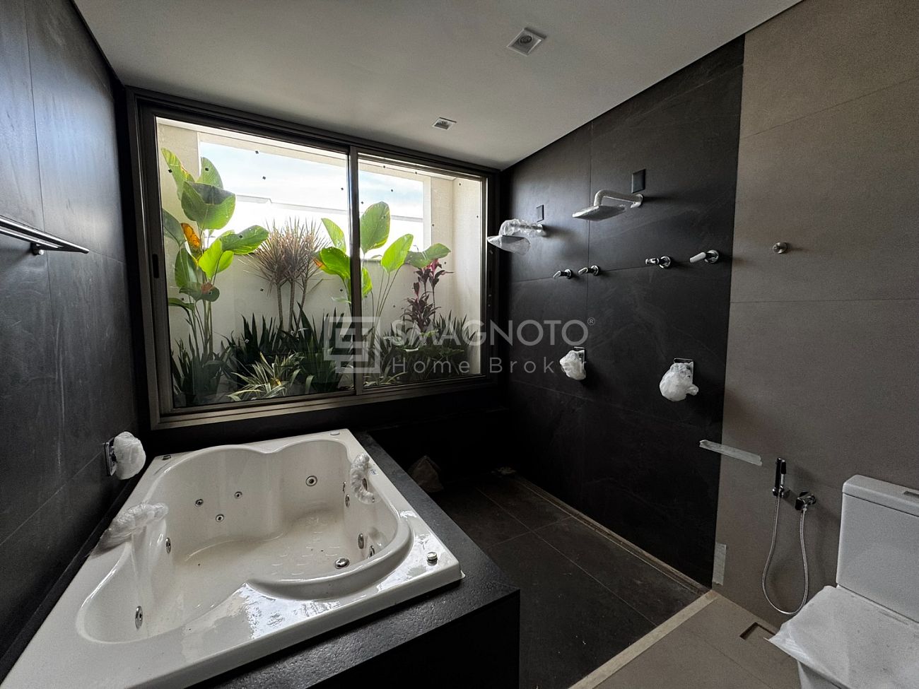 A área íntima revela quatro suítes primorosas, todas equipadas com armários embutidos de alta qualidade, garantindo privacidade e organização. A suíte master é um verdadeiro santuário, complementada por um banheiro espaçoso com banheira, o refúgio perfeito para relaxamento.