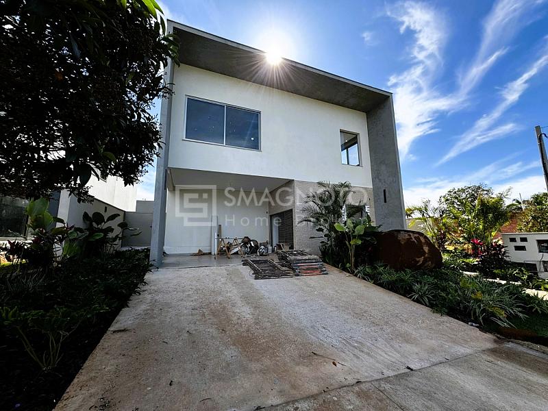 Erguida em um terreno generoso de 453m², com uma imponente construção de 363m², cada detalhe foi meticulosamente pensado para proporcionar o máximo em conforto e sofisticação. Adentre um universo onde a luz natural abraça os ambientes e o acabamento em madeira natural de lei confere um toque de atemporalidade e elegância.