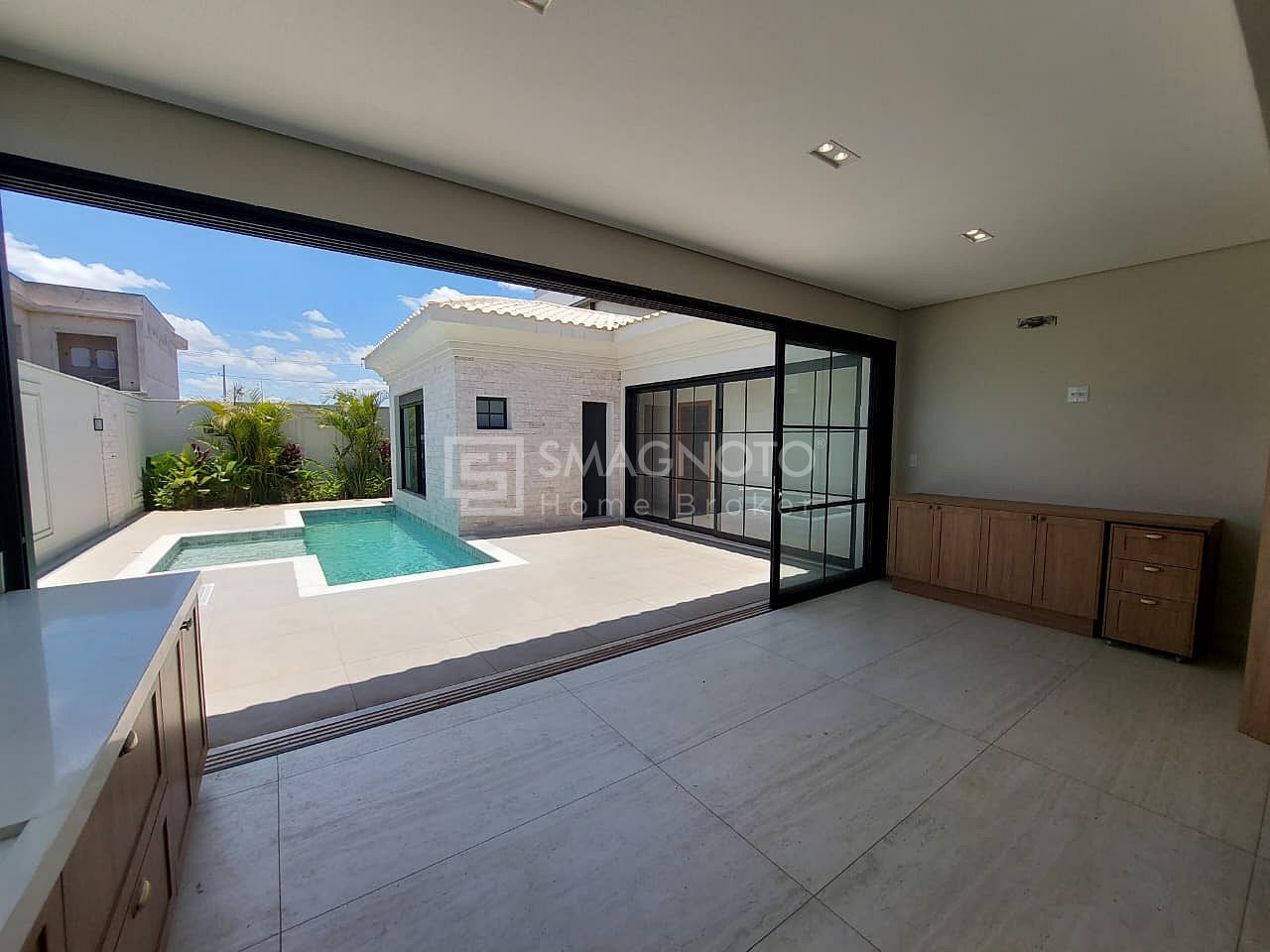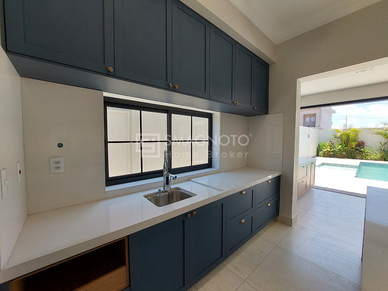 Os detalhes impressionam em cada ambiente: fachada com revestimento em pedra natural, esquadrias automatizadas da Magnum, armários planejados Maca Ipês em todos os cômodos, acabamentos de marmoraria Bela Arte e 6 pontos de ar-condicionado com casa técnica. O cuidado com eficiência e economia também se destaca com sistema de aquecimento solar para toda a residência e piscina, além de 12 placas fotovoltaicas instaladas. A área externa recebe a assinatura do paisagismo Aroeira e a churrasqueira oferece opção a gás ou carvão.