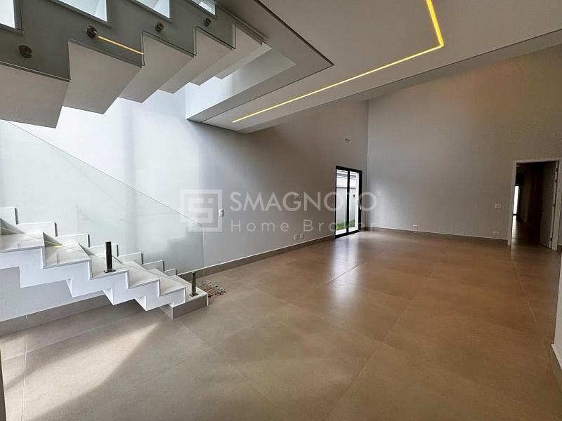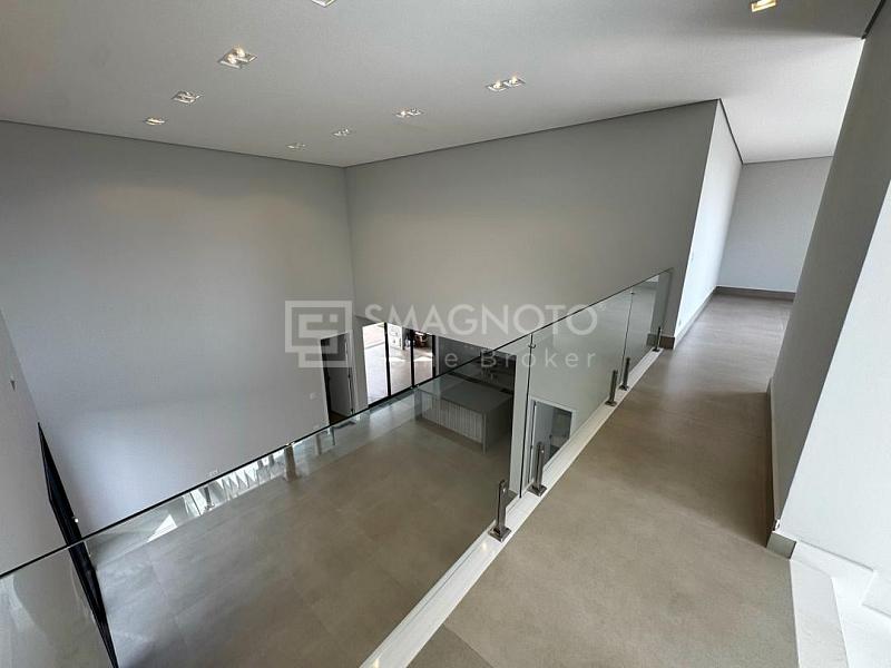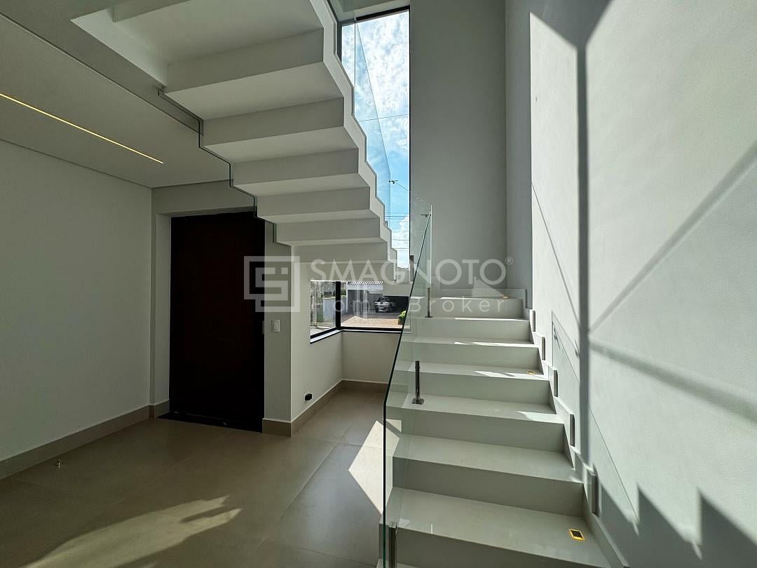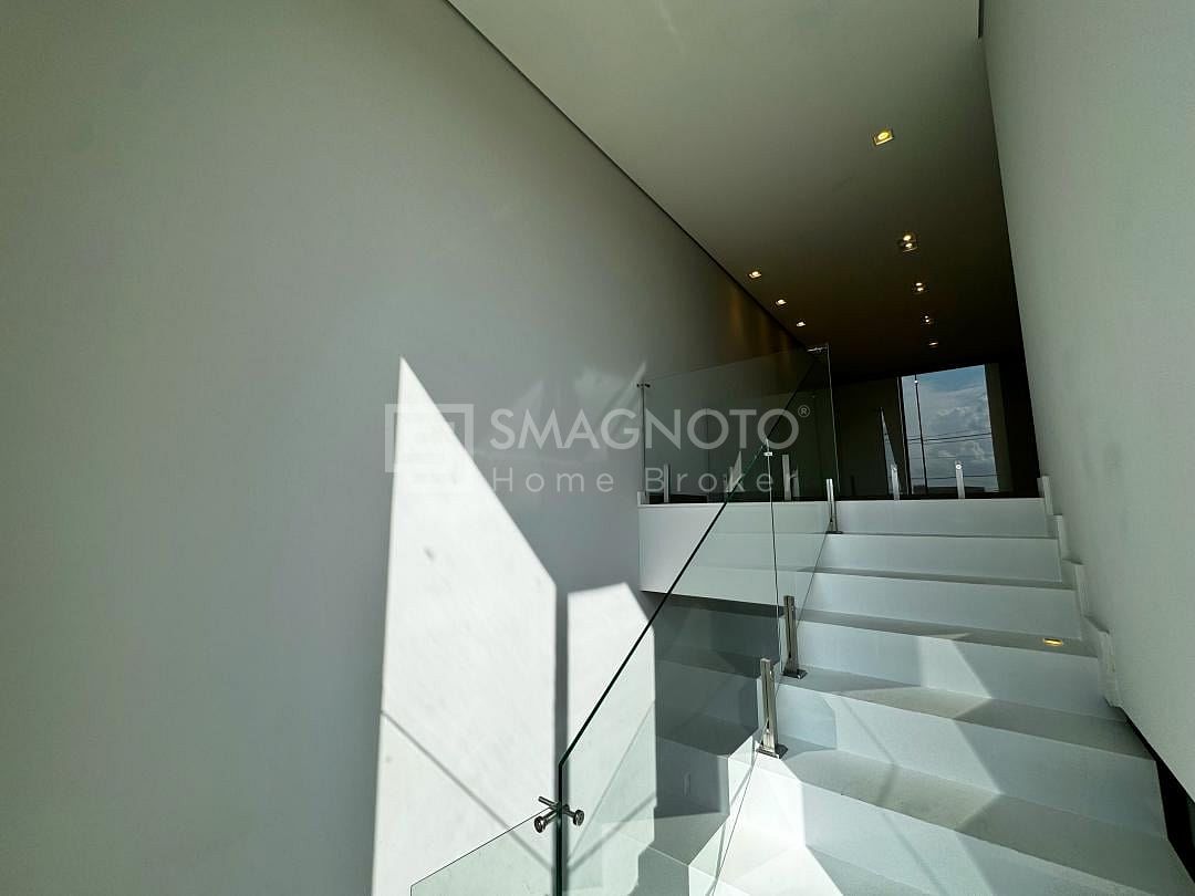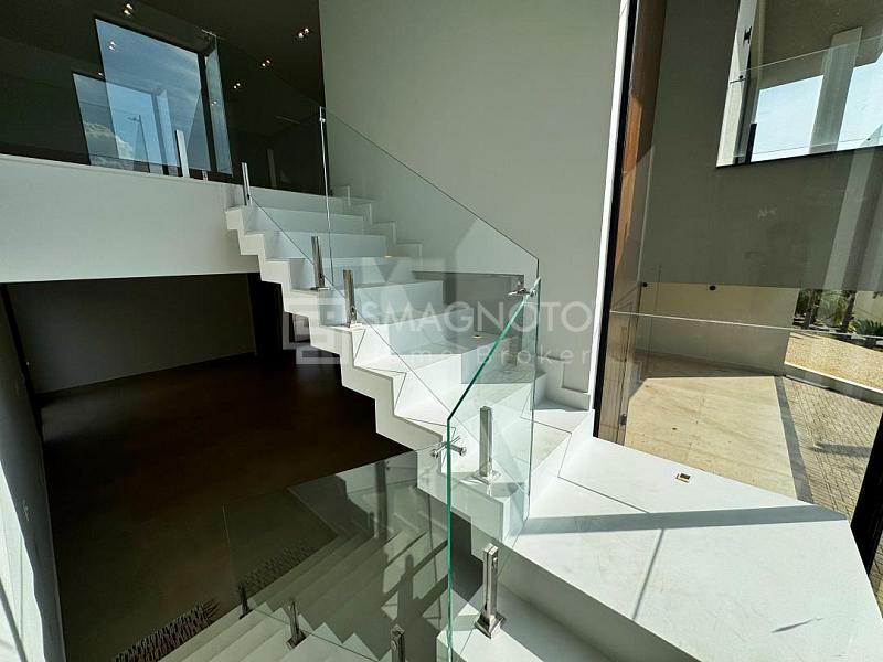 No pavimento térreo a residência é composta por 6 vagas de garagem com ponto para carregamento elétrico já instalado, sendo 3 cobertas, além disso você pode desfrutar de 3 lindas suítes todas com closet, sendo a master com amplo closet e banheiro duplo, lavabo, salas de estar e jantar com pé direito duplo integradas junto com a cozinha americana, área gourmet, banheiro externo com chuveiro, área de serviço, armário depósito e casa de maquinas.
