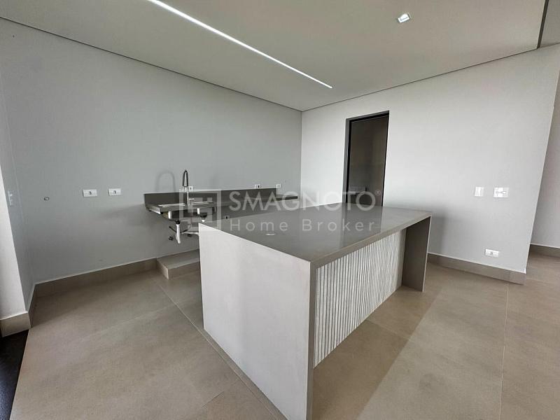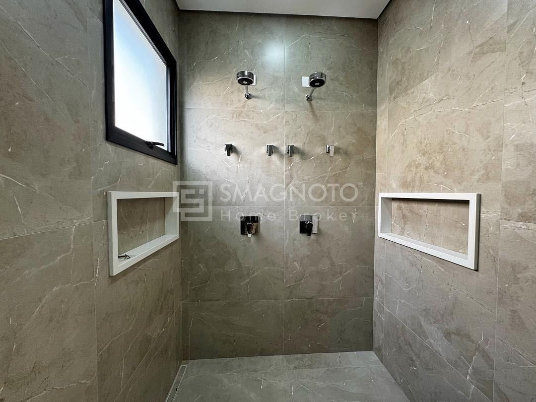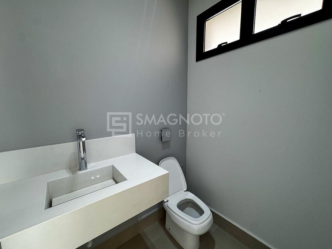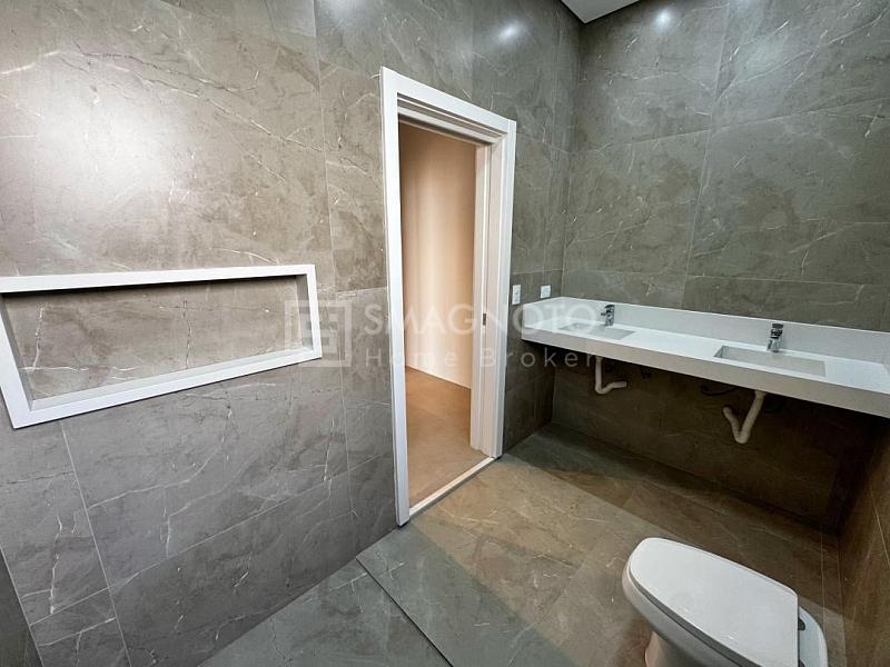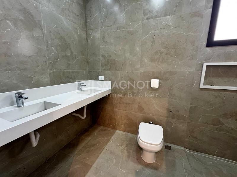 No pavimento térreo a residência é composta por 6 vagas de garagem com ponto para carregamento elétrico já instalado, sendo 3 cobertas, além disso você pode desfrutar de 3 lindas suítes todas com closet, sendo a master com amplo closet e banheiro duplo, lavabo, salas de estar e jantar com pé direito duplo integradas junto com a cozinha americana, área gourmet, banheiro externo com chuveiro, área de serviço, armário depósito e casa de maquinas.