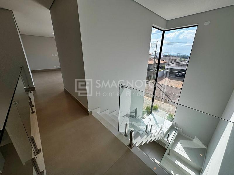No pavimento superior a residência possuí um mezanino amplo com banheiro e uma sala multiuso, que pode ser reversível para uma quarta suíte, escritório, home theater, academia ou home office, além de uma linda vista permanente do por do sol para a Serra de São Pedro.