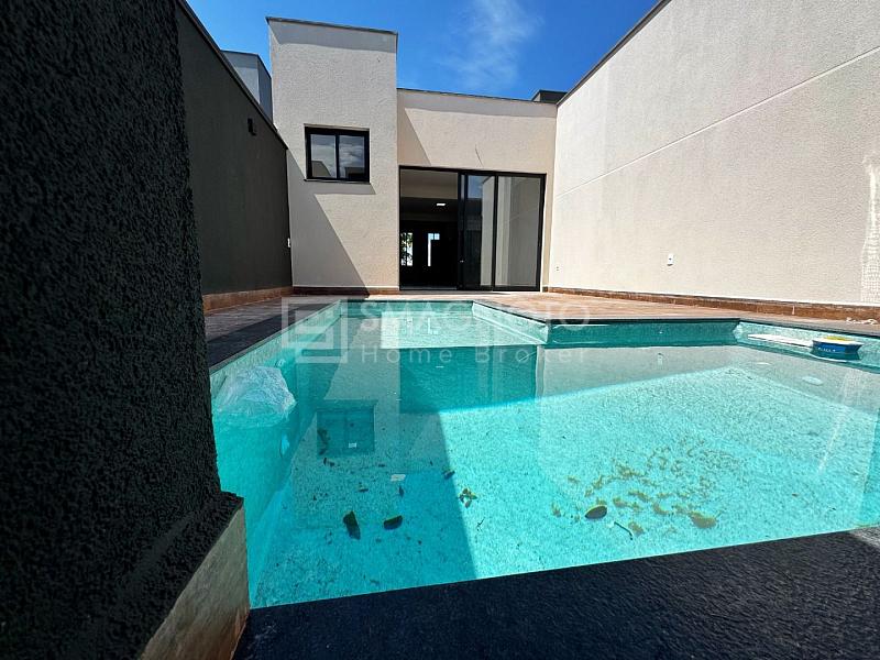 Características da Casa: com 4 vagas de garagem (2 cobertas); Ampla sala integrada à cozinha e à área gourmet; Piscina e espaço para momentos de lazer; Despensa, lavanderia, lavabo e banheiro de apoio;3 dormitórios, sendo 1 suíte master com closet. Tudo isso em um condomínio onde qualidade de vida e segurança andam de mãos dadas