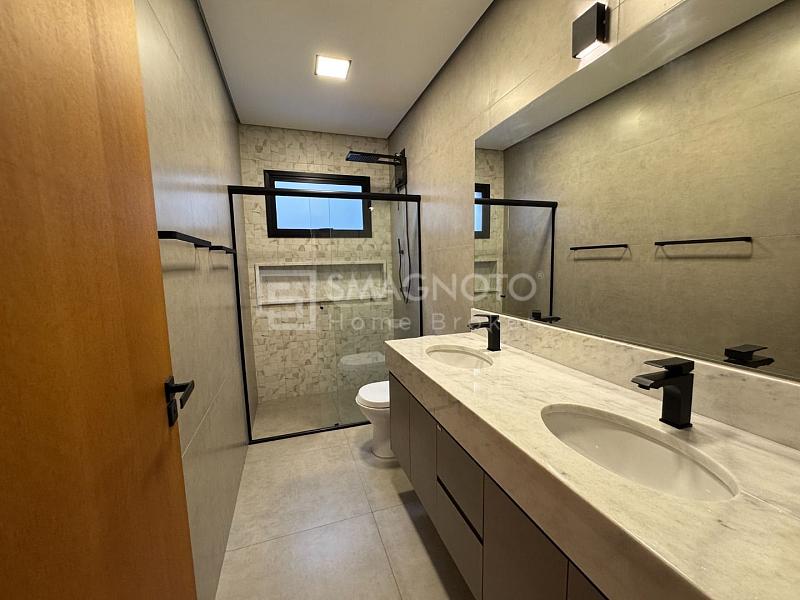 Construída com materiais de primeiríssima linha, esta casa dispõe de acabamentos finos, revestimentos Portobello, Atlas, Villagres e Embramaco, já está equipada com móveis planejados e ar condicionado, possuindo ainda, já instalados aquecimento solar e energia fotovoltaica.