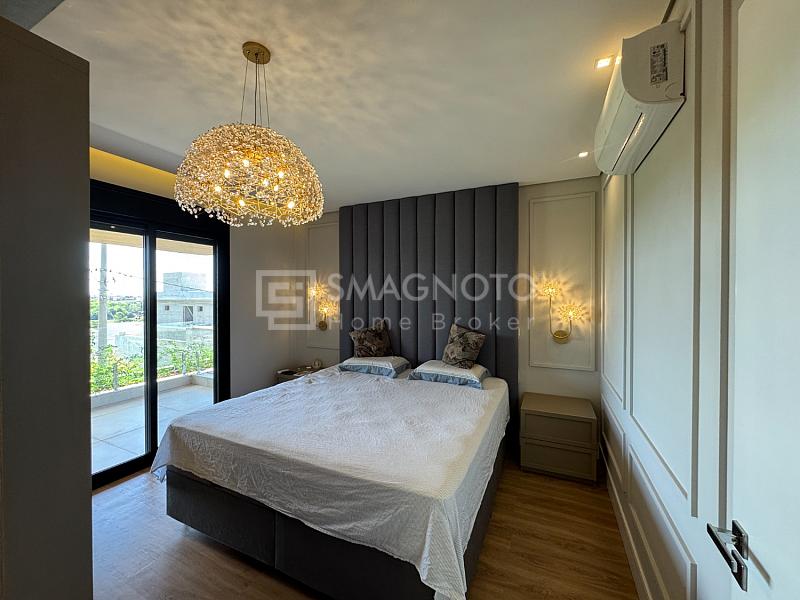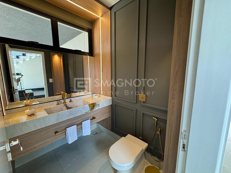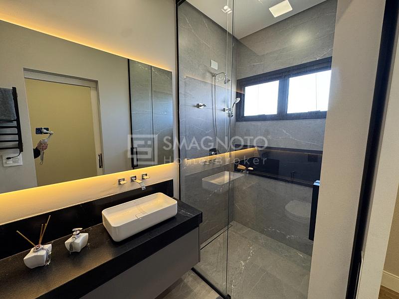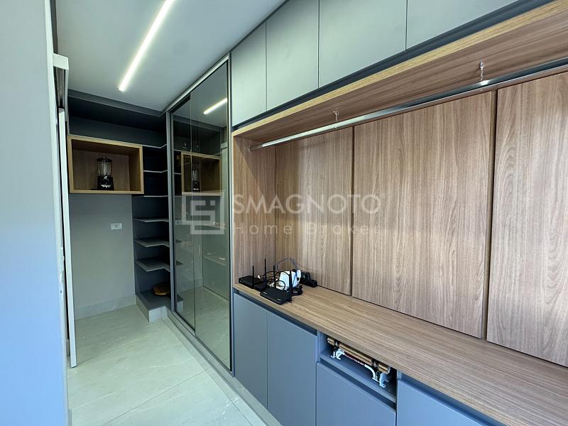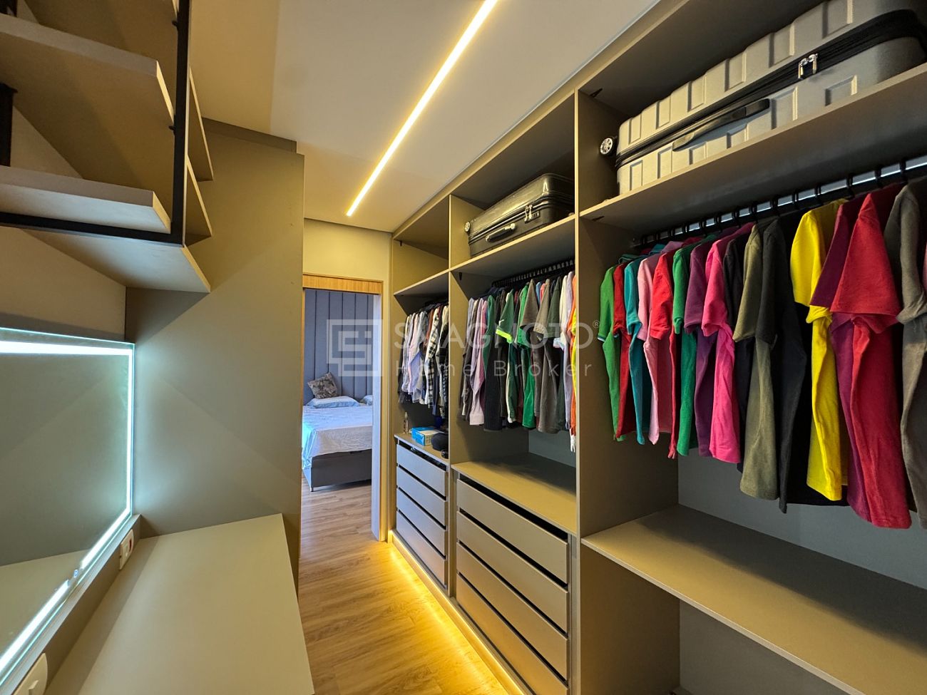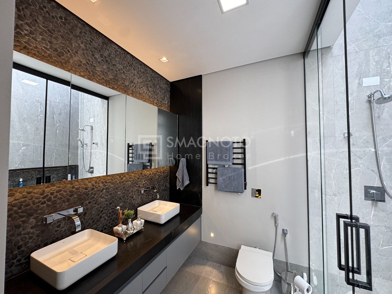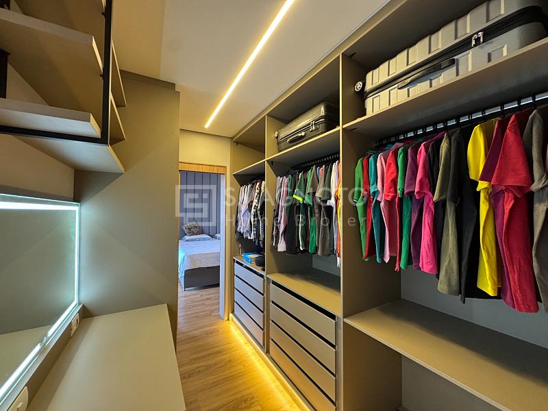 • Três suítes com persianas elétricas, sendo a master com closet, banheiro duplo e varanda privativa
