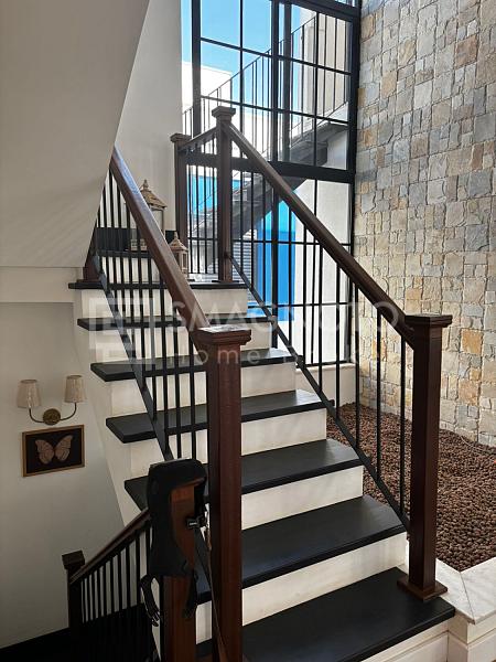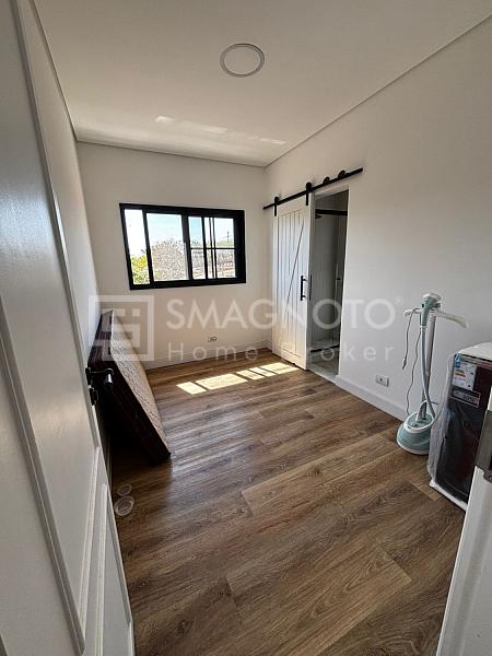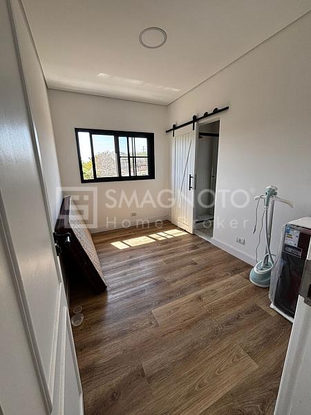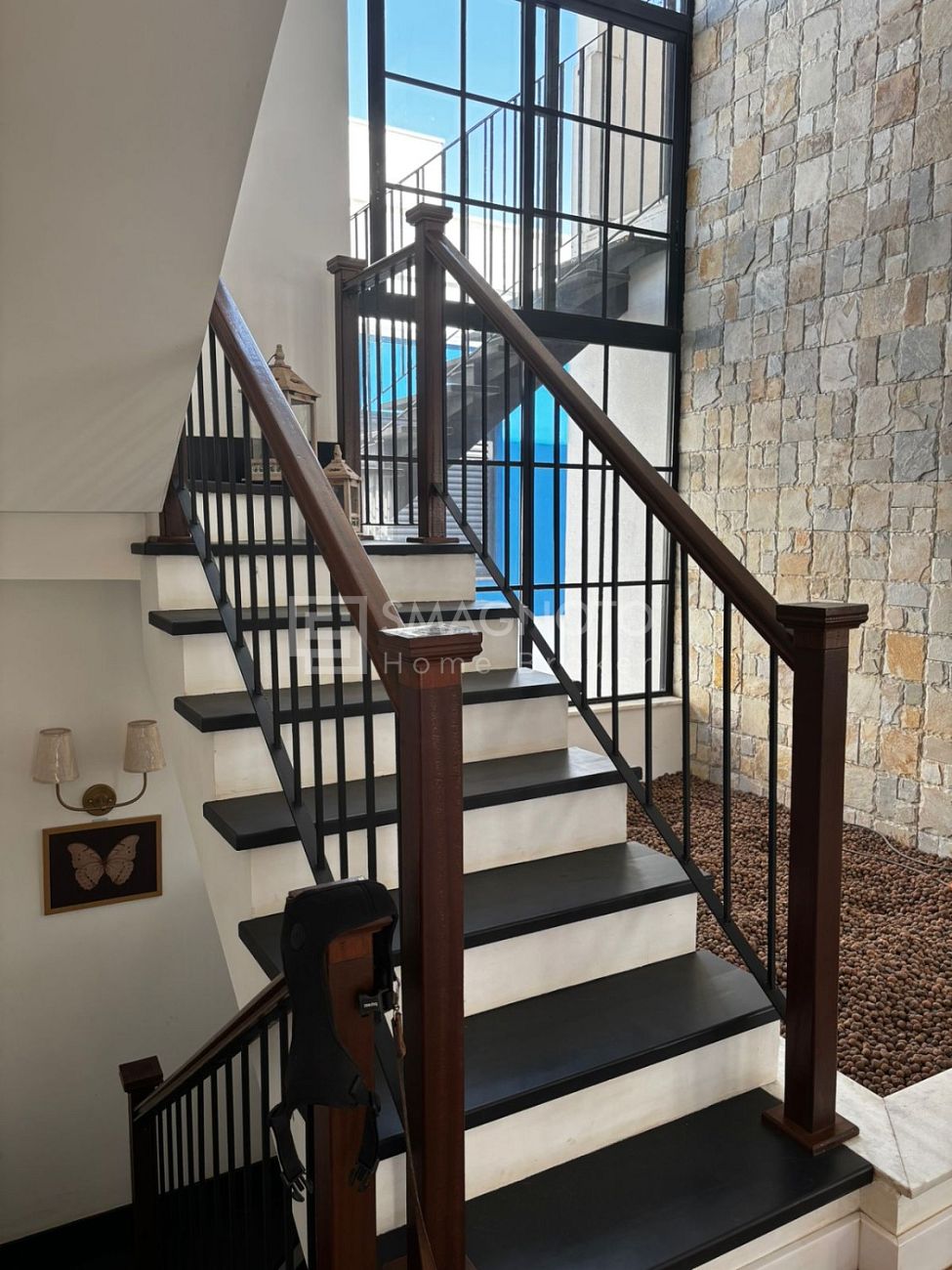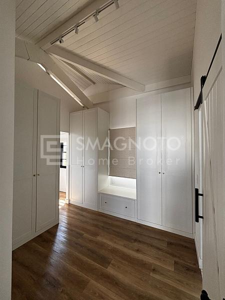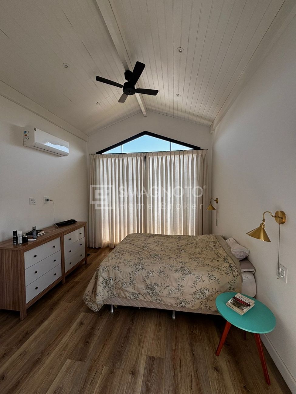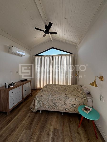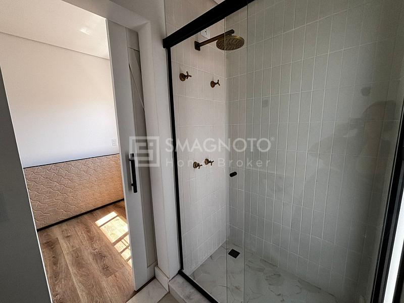 No piso superior, a área íntima dispõe de 3 suítes cuidadosamente planejadas. Uma delas com armário embutido, papel de parede e ar-condicionado. A suíte máster é um verdadeiro refúgio, com closet no estilo catedral, portas de correr, ar-condicionado e terraço envidraçado.