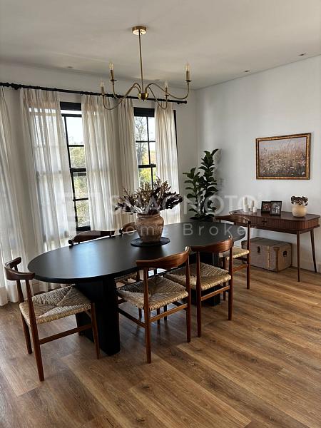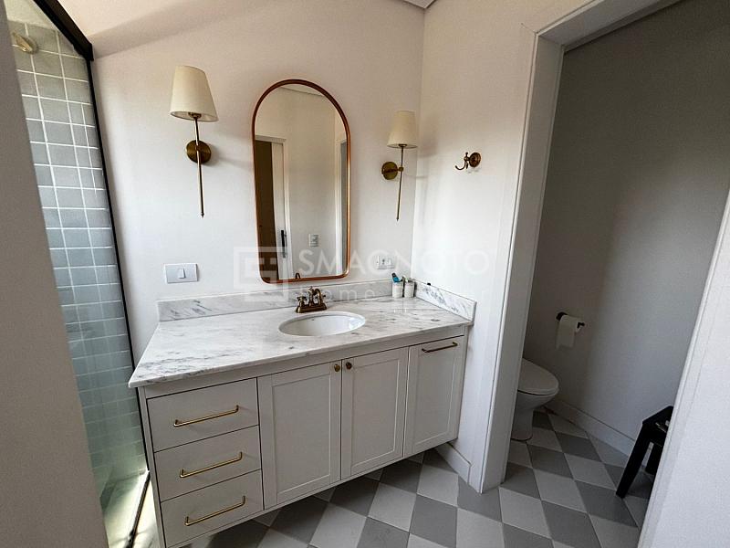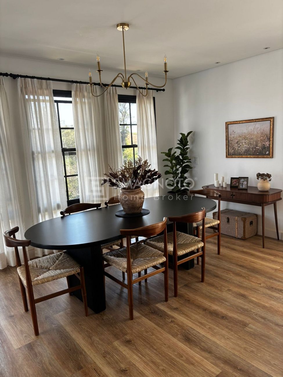 Com 4 vagas de garagem, sendo 2 cobertas, o imóvel recebe seus moradores e convidados por um hall de entrada imponente que conduz a uma espaçosa sala de TV climatizada, sala de estar e jantar integradas à cozinha planejada, equipada com forno e fogão embutidos. O ambiente é valorizado por um jardim de inverno, lavabo e uma charmosa sacada com vista livre para o lago. Detalhes como teto rebaixado em gesso, luminárias douradas, piso vinílico, cortinas sob medida e iluminação em LED reforçam o requinte de cada ambiente.