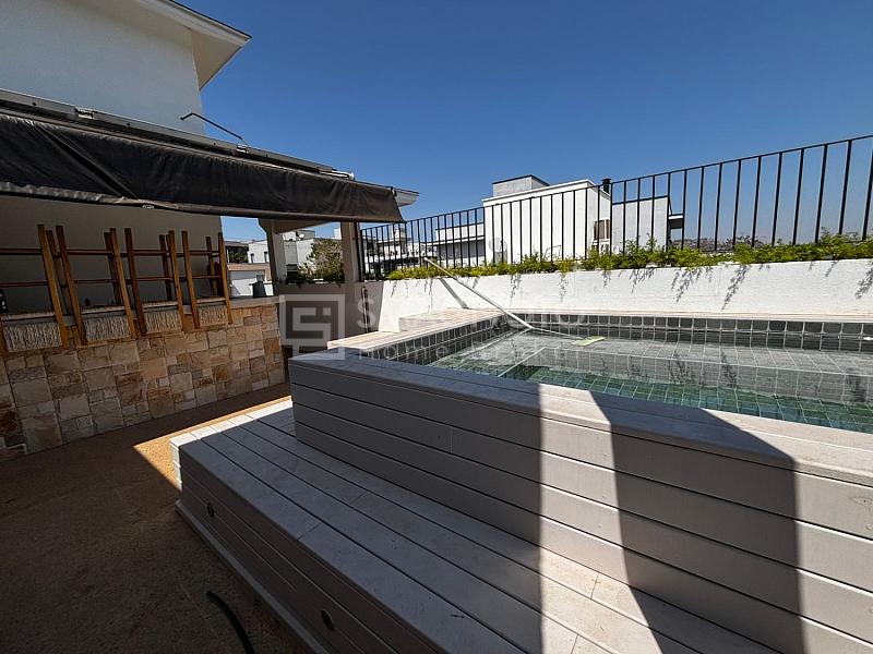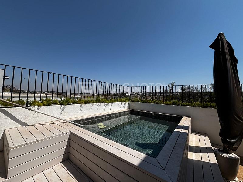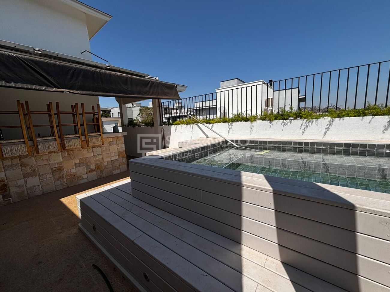 O lazer é um capítulo à parte. A área gourmet, completa e equipada com churrasqueira em inox preto, integra-se ao ambiente externo, onde se destacam a piscina com hidromassagem tipo jacuzzi e um amplo solarium. No piso inferior, encontram-se espaços versáteis e funcionais: lavanderia, lavabo, escritório, estúdio musical, área para academia e uma cozinha de apoio com ventiladores de teto e portas de vidro em esquadrias sofisticadas, todos com piso em porcelanato. O quintal arborizado oferece ainda árvores frutíferas, reforçando o conceito de bem-estar.