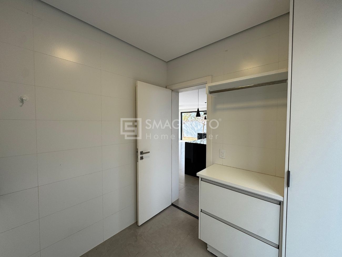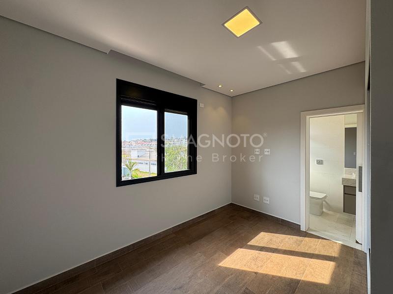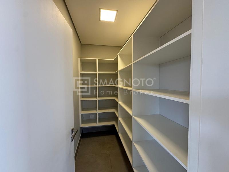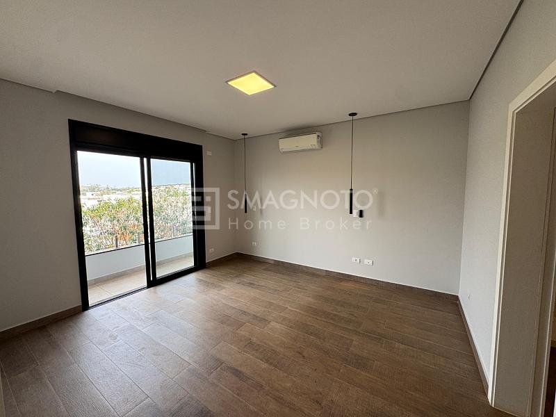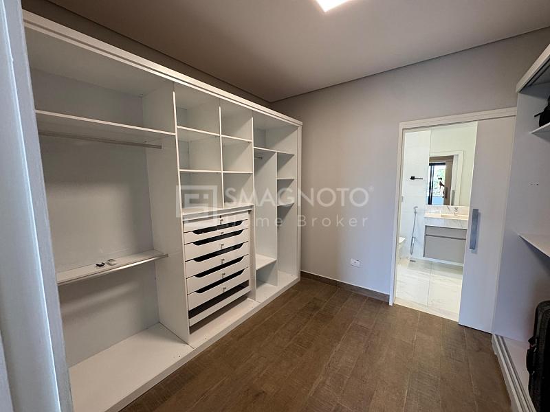 A suíte master possui closet e varanda, criando um espaço sofisticado e exclusivo para descanso e privacidade.