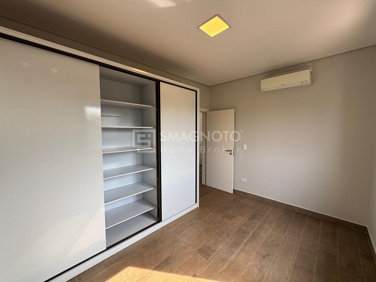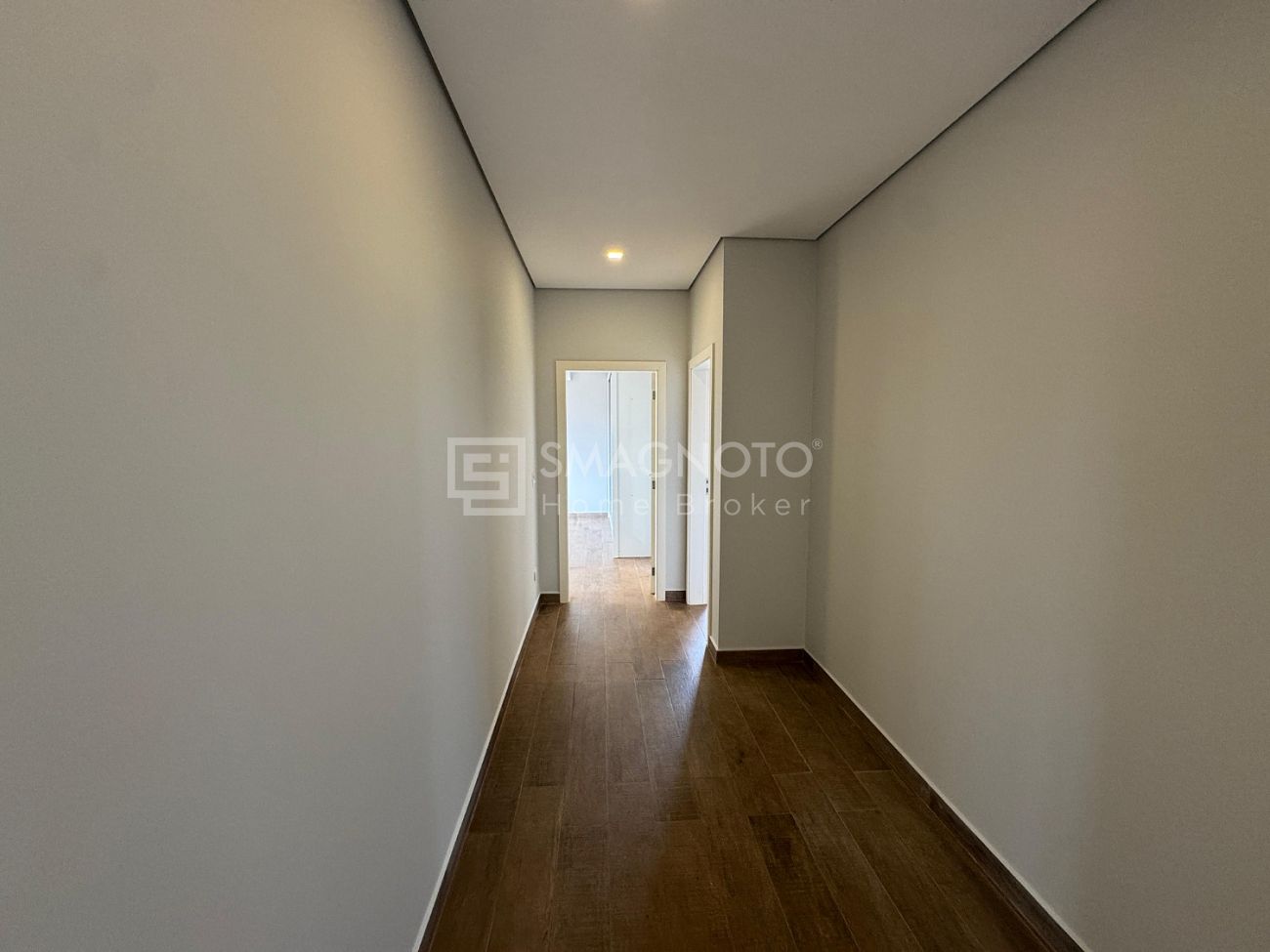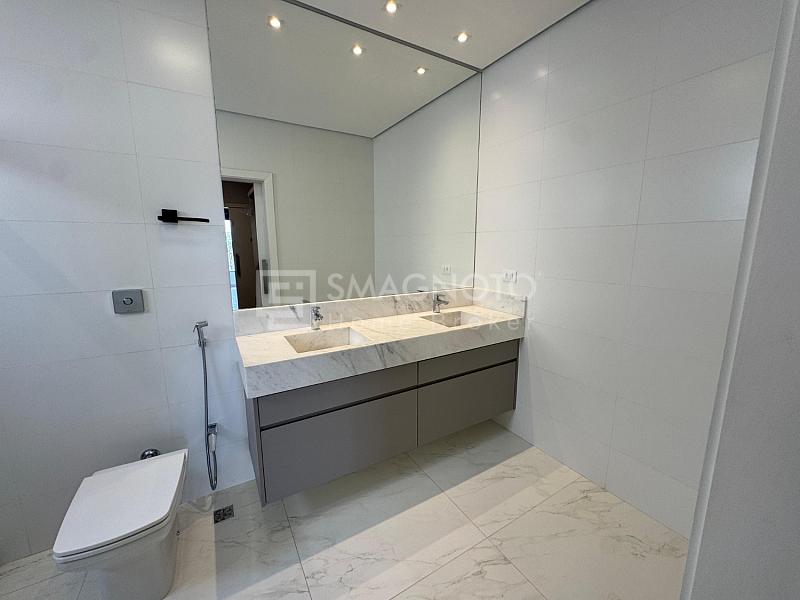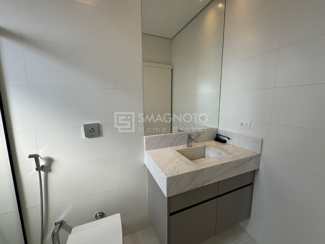 A suíte master possui closet e varanda, criando um espaço sofisticado e exclusivo para descanso e privacidade.