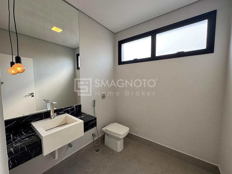 No piso inferior, a casa apresenta sala de TV aconchegante e amplo lavabo, que pode ser reversível para mais uma suíte, aumentando a versatilidade da residência.