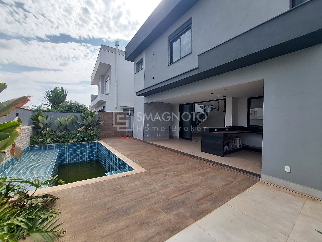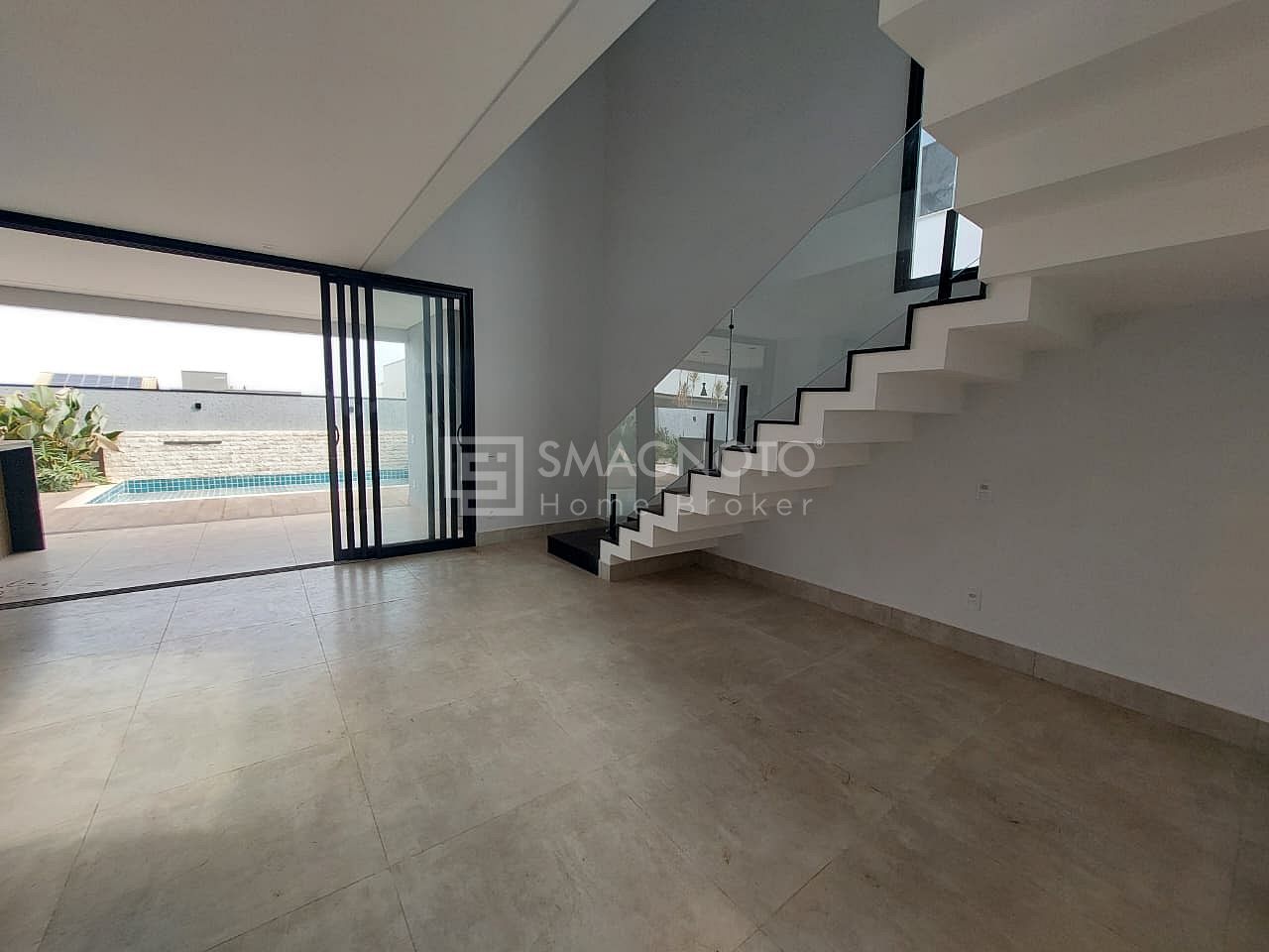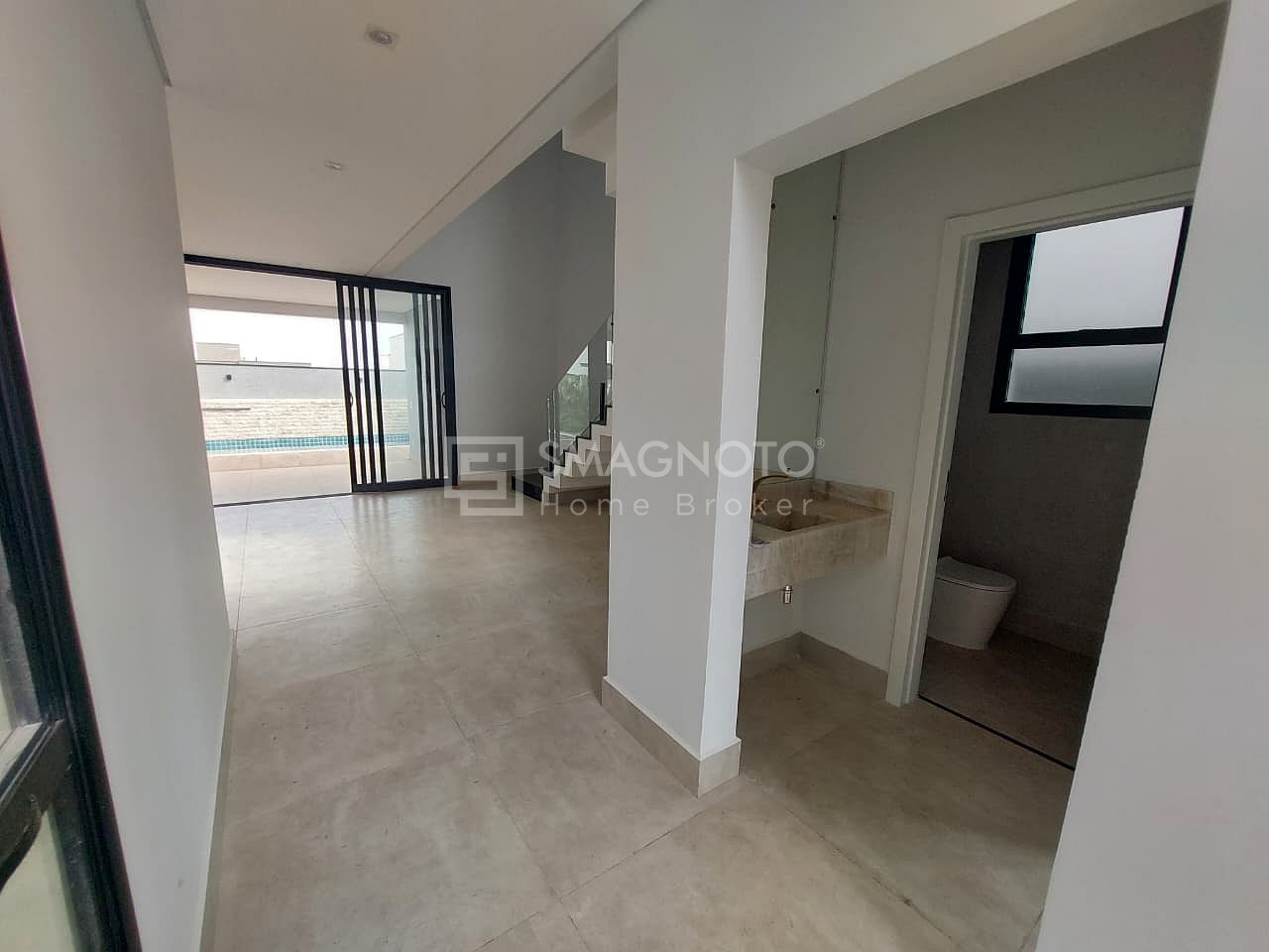 No pavimento inferior, a casa oferece uma sala de estar ampla, cozinha integrada com despensa e área de serviço funcional. O lavabo garante praticidade para visitas, enquanto a área externa impressiona com espaço gourmet e piscina com spa, perfeita para receber amigos e familiares.