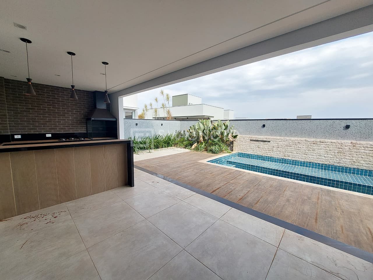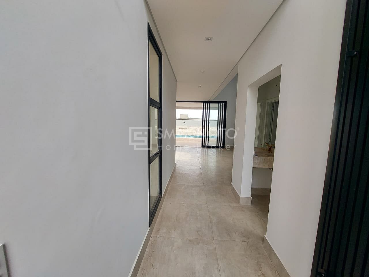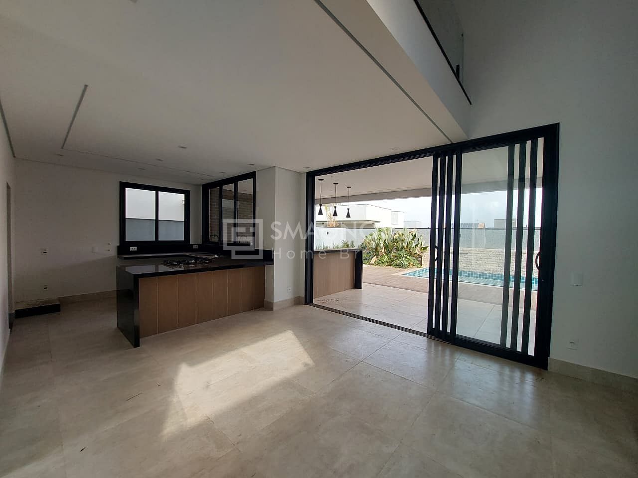 No pavimento inferior, a casa oferece uma sala de estar ampla, cozinha integrada com despensa e área de serviço funcional. O lavabo garante praticidade para visitas, enquanto a área externa impressiona com espaço gourmet e piscina com spa, perfeita para receber amigos e familiares.