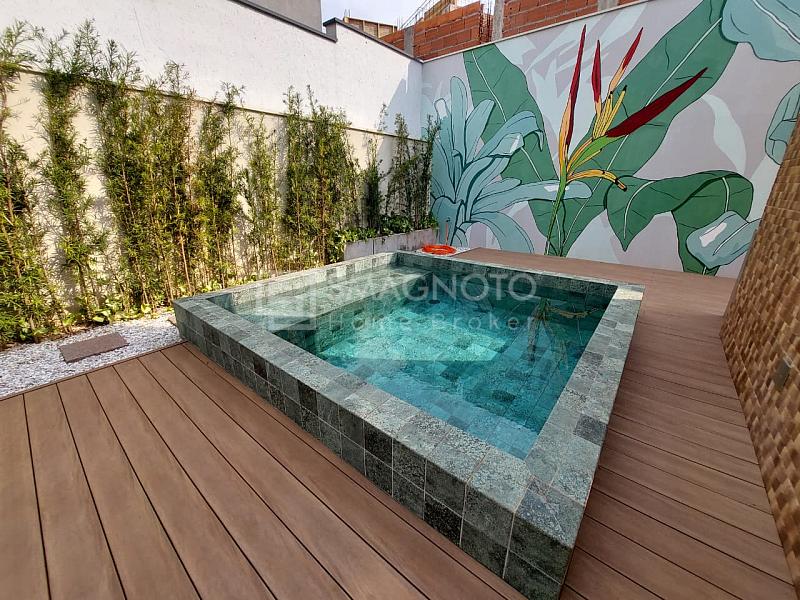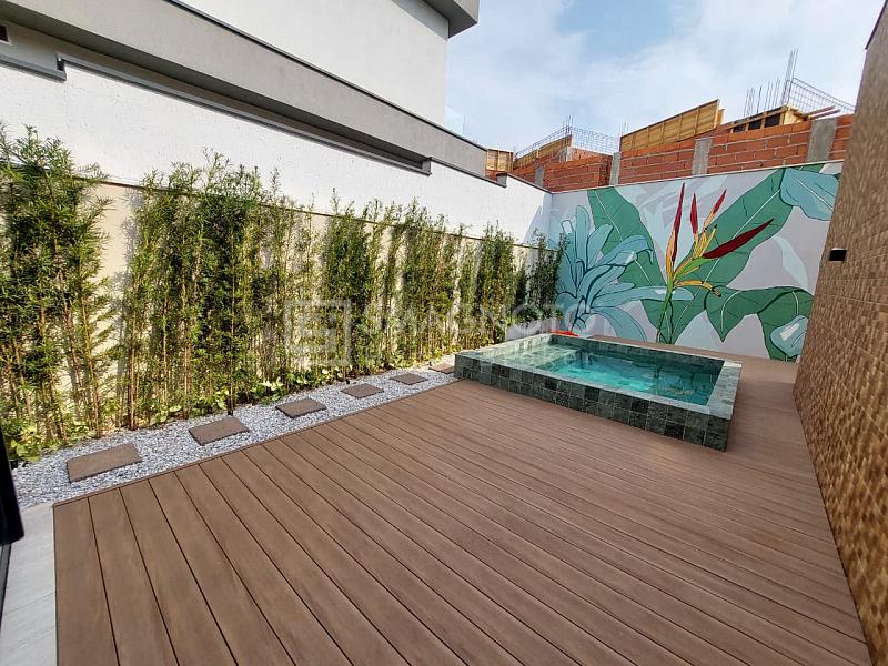 • Piscina com deck em madeira ecológica, ideal para relaxar e receber convidados.