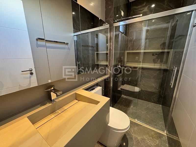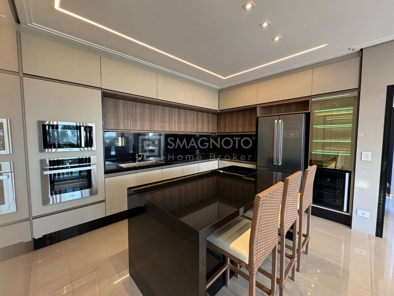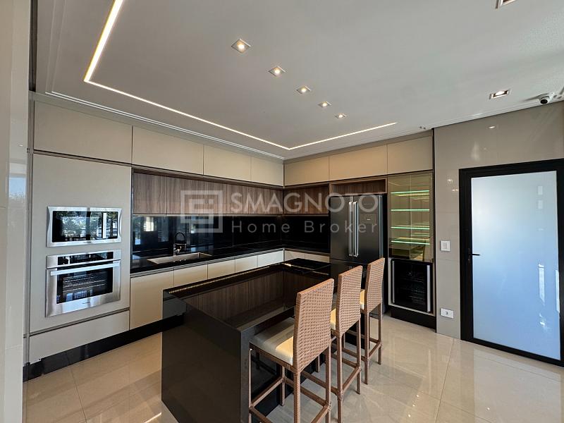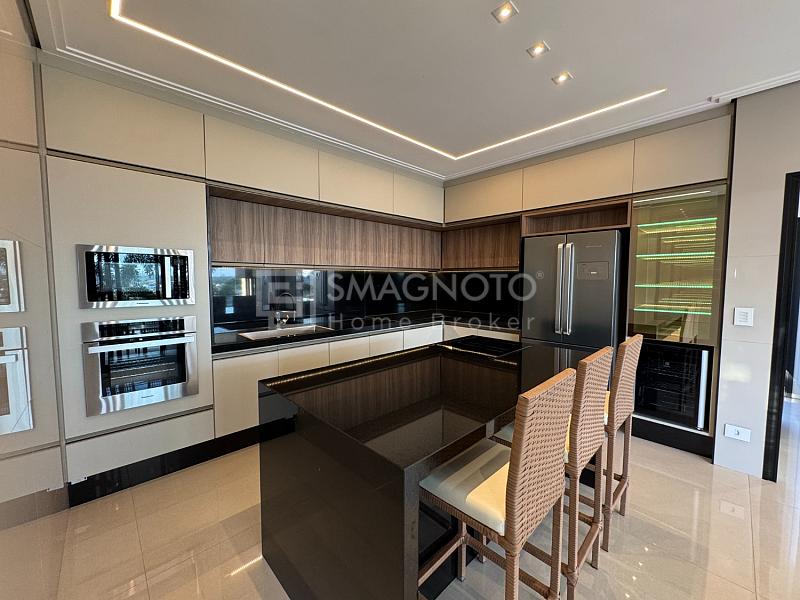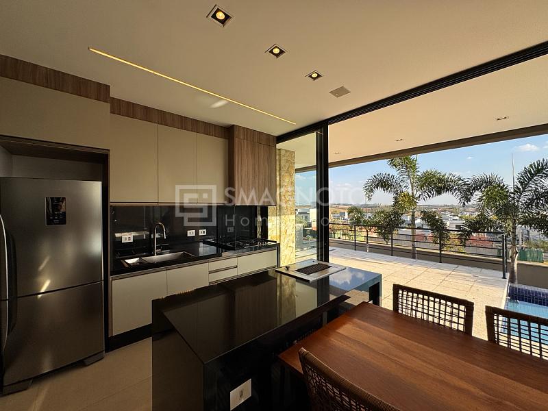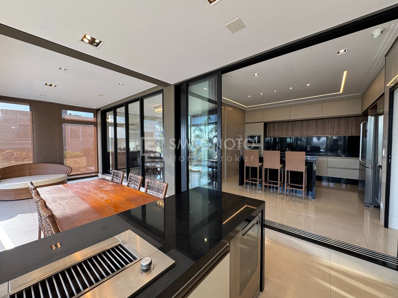 O lazer é de outro nível: piscina com borda infinita, churrasqueira, cozinha equipada com cook tops (gás e indução), forno, micro-ondas e adega, além de infraestrutura para coifas e ar-condicionado na área gourmet.