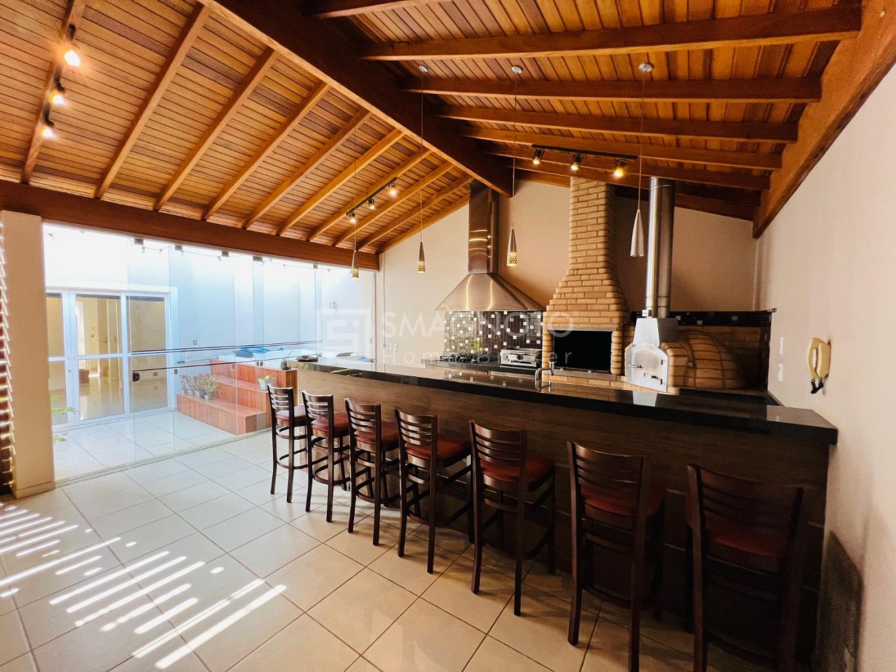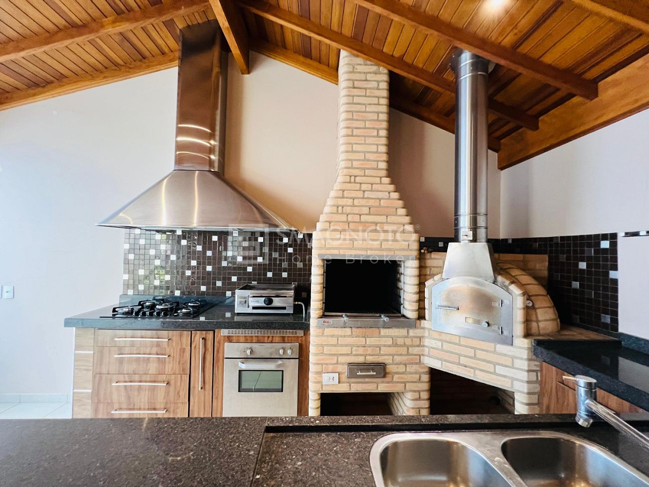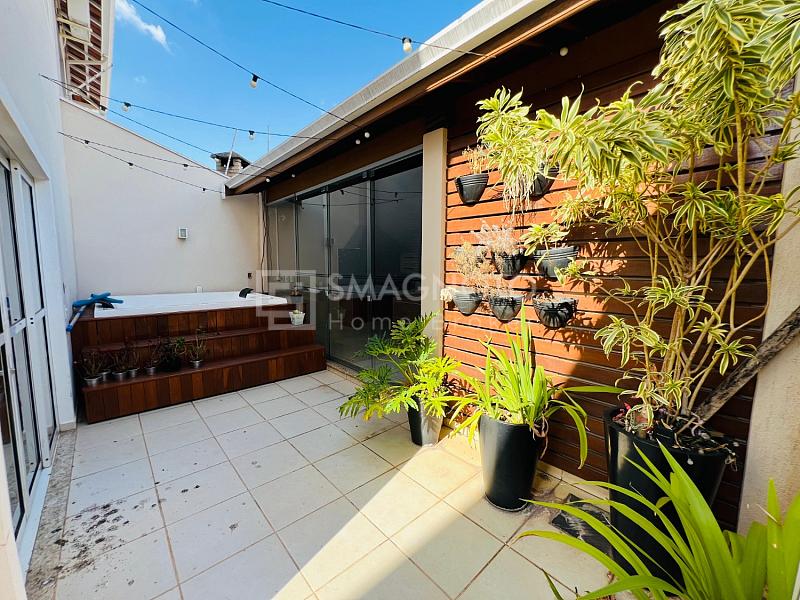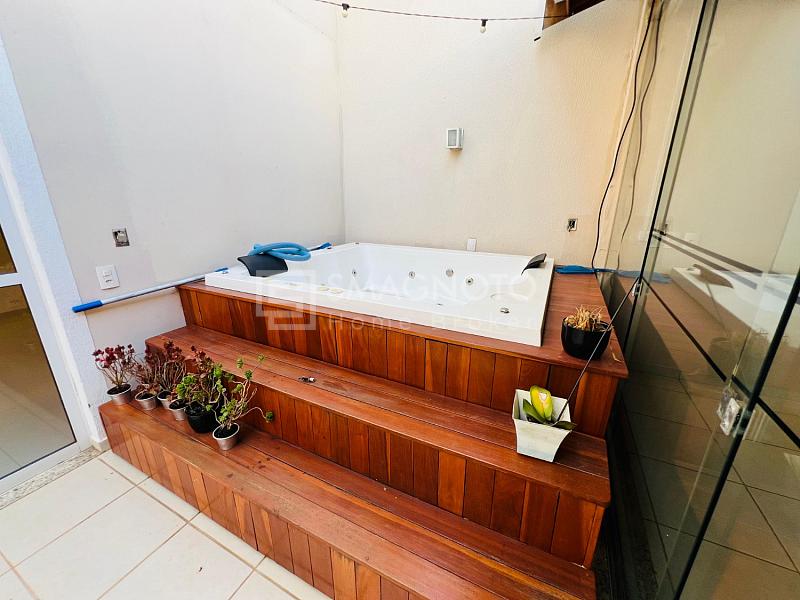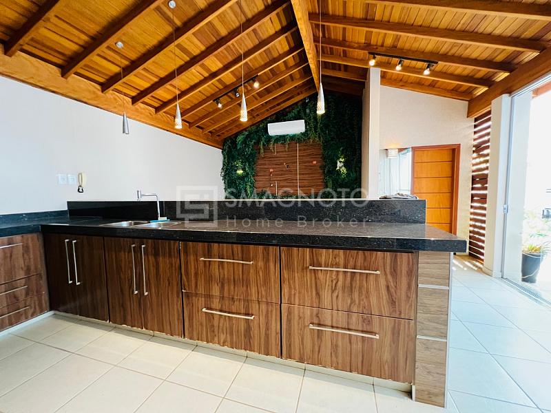Nos fundos, um verdadeiro refúgio para momentos de lazer: espaço gourmet com churrasqueira, deck com SPA e banheiro externo, tudo pensado para receber com estilo e relaxar em grande estilo.