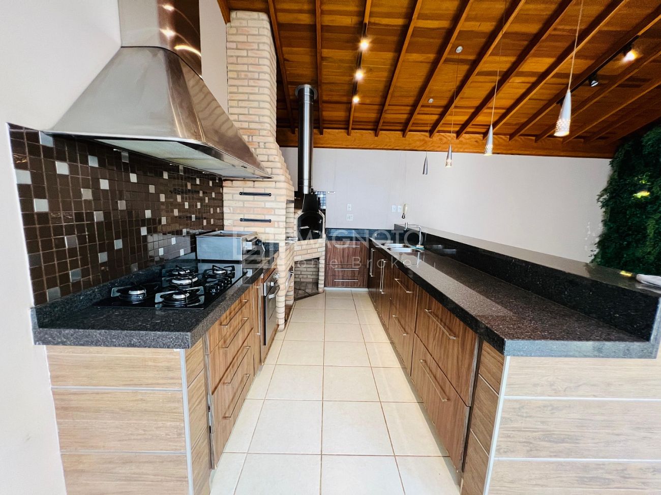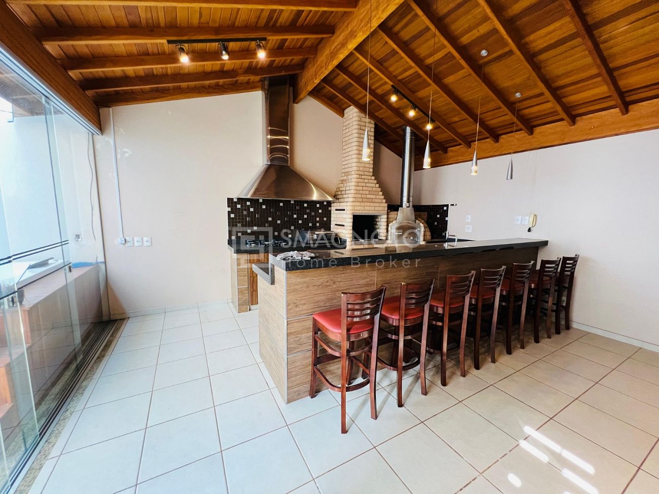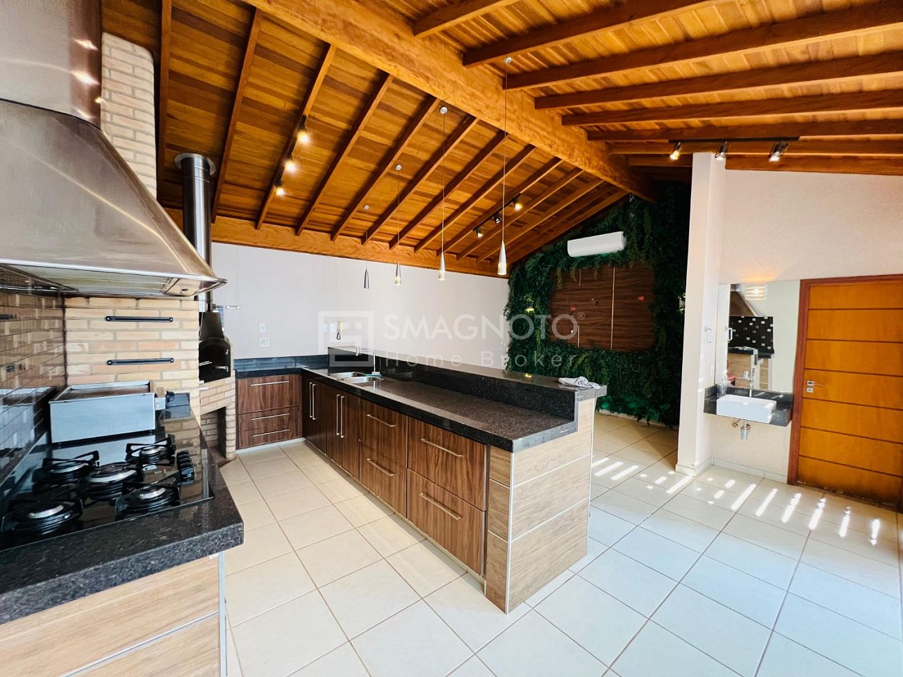 Nos fundos, um verdadeiro refúgio para momentos de lazer: espaço gourmet com churrasqueira, deck com SPA e banheiro externo, tudo pensado para receber com estilo e relaxar em grande estilo.