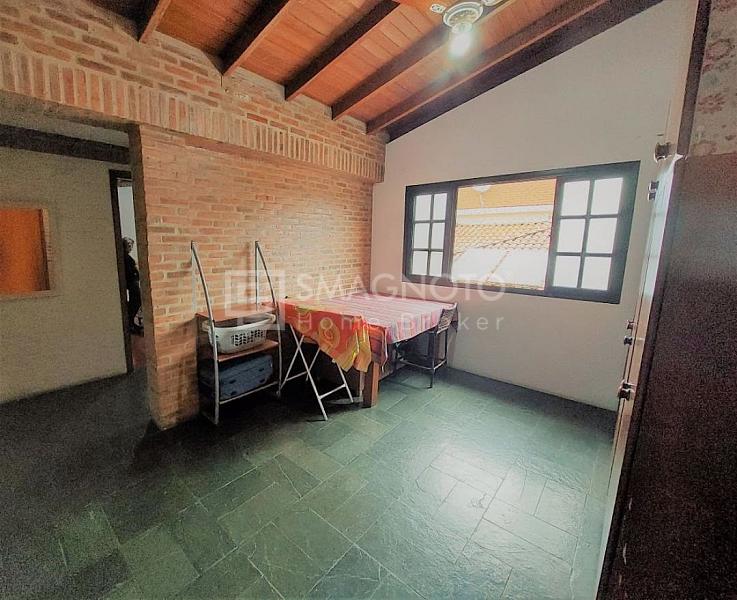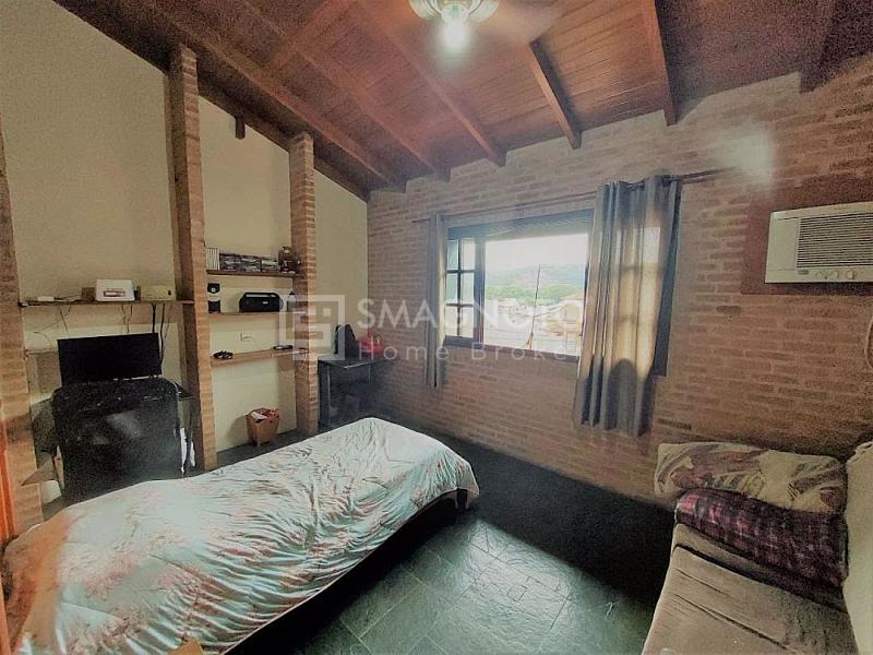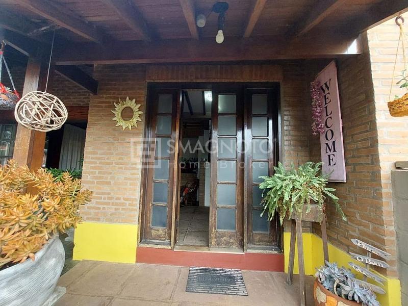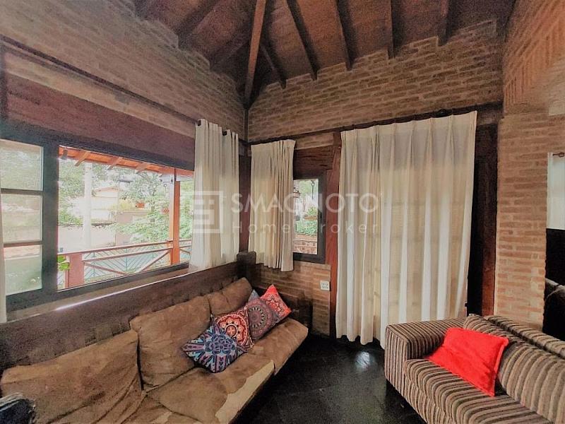 Construída por um argentino, com seu estilo todo peculiar a casa possui uma linda varanda, piso de ardósia, tijolinho a vista e muita energia boa, na entrada você é surpreendido com uma linda varanda que da acesso ao hall de entrada, passando o hall temos o bar e uma sala de visita ampla, conjugada com outra sala num patamar mais elevado que pode ser usado como sala de Tv.