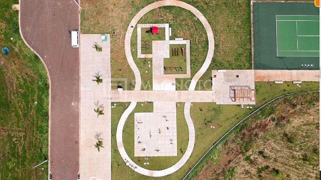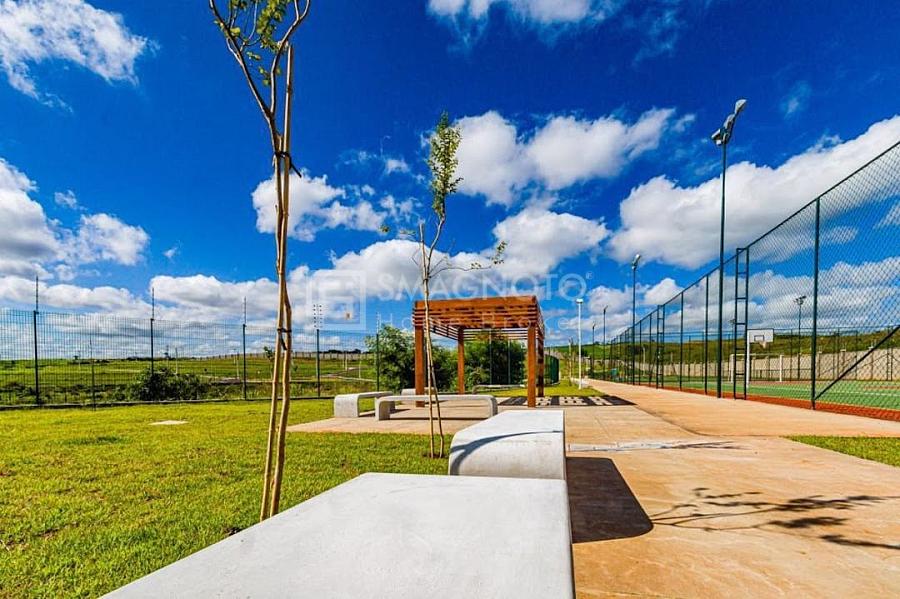 Este terreno em condomínio oferece uma infraestrutura completa, com portaria 24 horas, quadra de esportes, playground, quadra de tênis, salão de festa, campo de futebol e mercado.